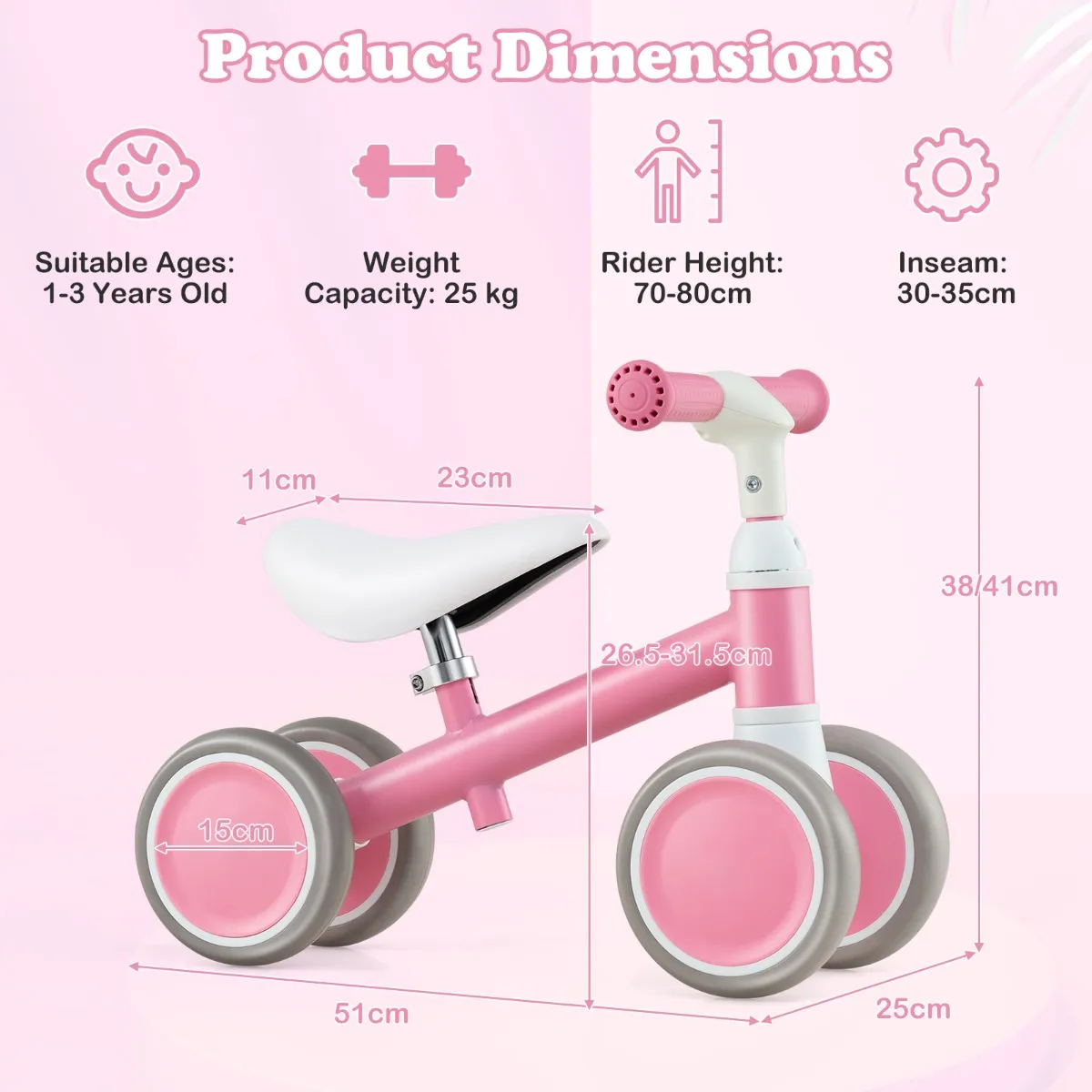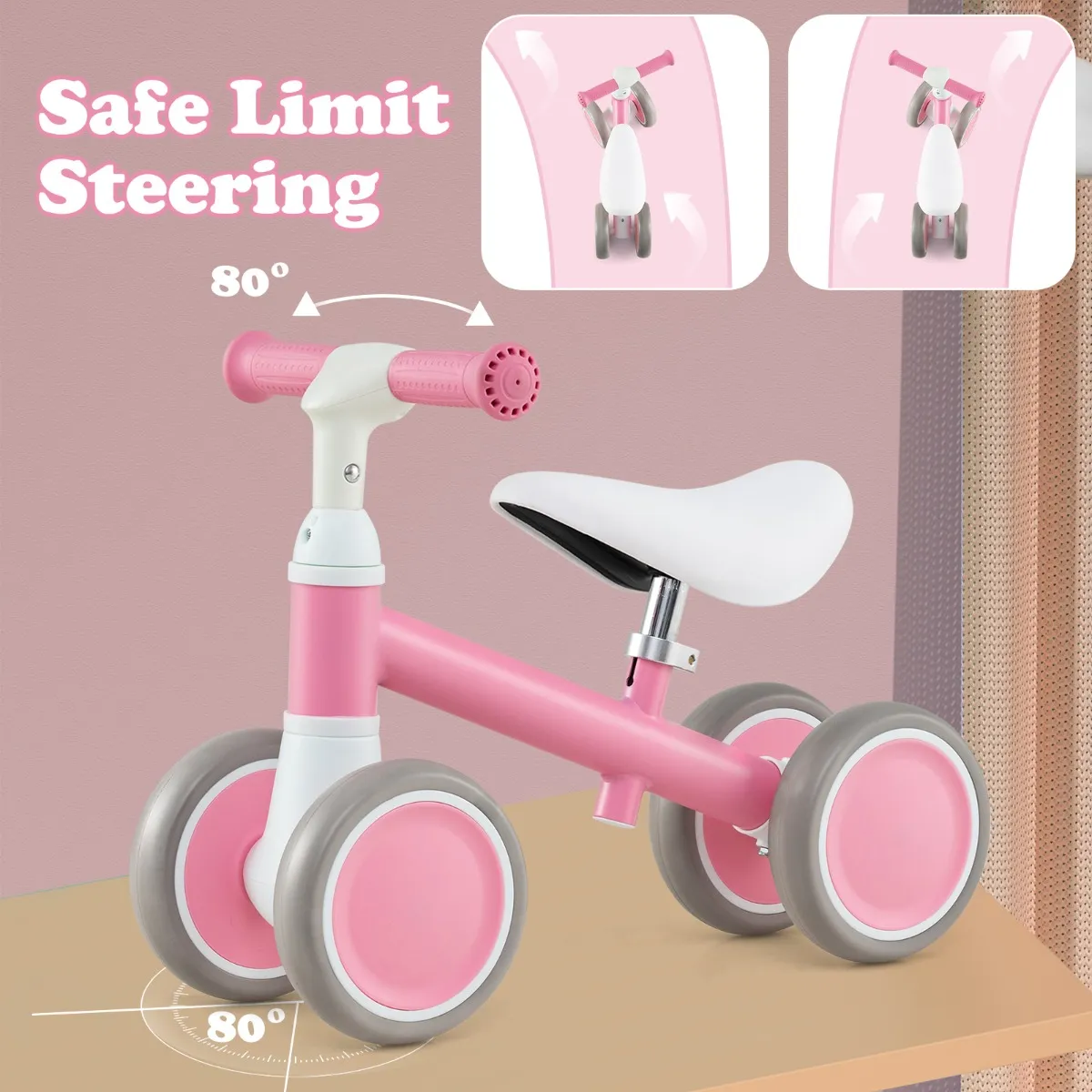 Babyloopfiets Peuterloopfiets Met In Hoogte Verstelbaar Stuur En Stoel Duwspeelgoed Voor Baby’s 4-Wiel Loopfiets Roze