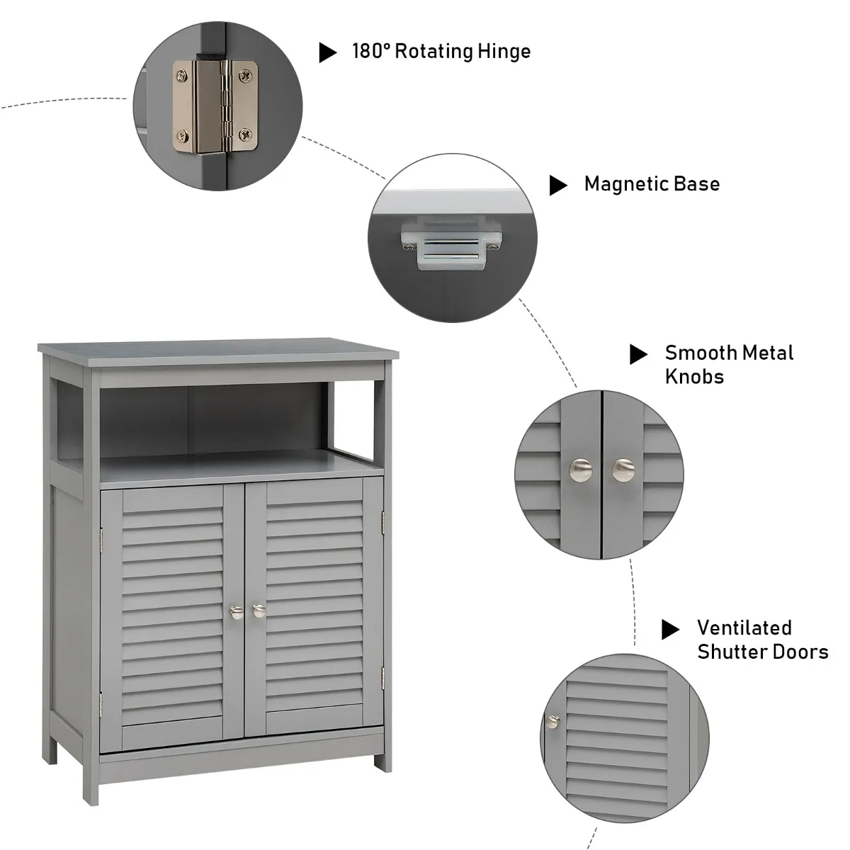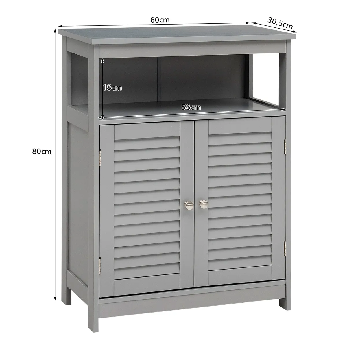 Gemaakt van hoge kwaliteit P2 MDF, onze kast is stevig en kan worden gebruikt voor een lange tijd. Door de stabiele structuur kan deze kast stevig op de grond staan zonder te schudden. Met een open plank en een grote kast, kunt u naar behoefte spullen opbergen om uw ruimte opgeruimd te maken. De binnenste plank kan worden aangepast, wat geschikt is voor voorwerpen van verschillende hoogtes. Bovendien past onze opbergkast dankzij het eenvoudige en moderne ontwerp bij elke inrichtingsstijl. Het is een ideale opbergoplossing voor badkamer, woonkamer, slaapkamer en gang!