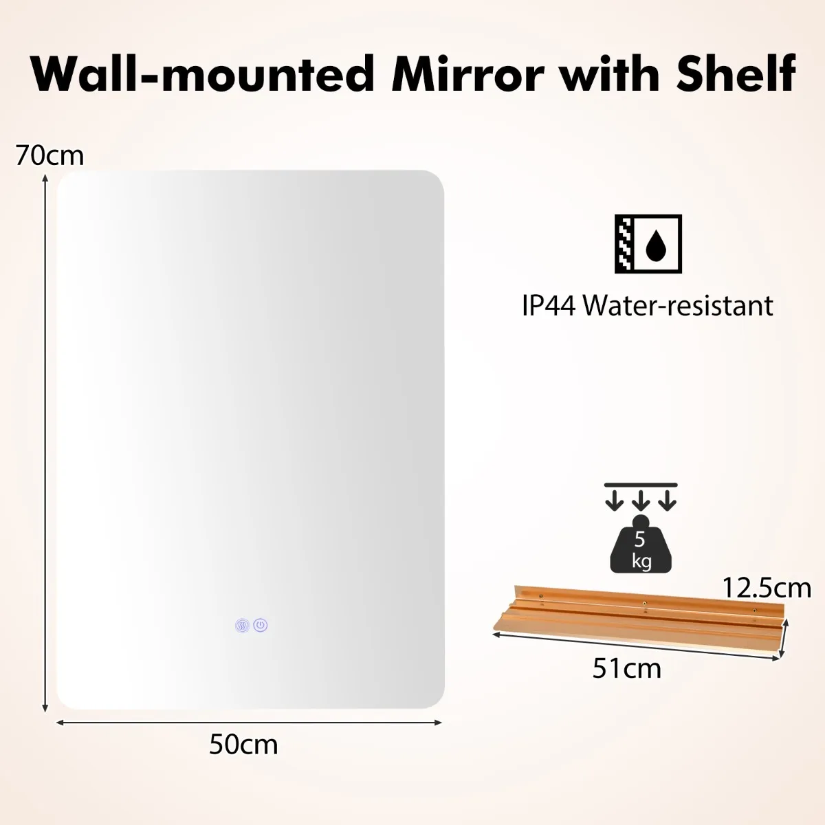 Onze LED wandspiegel met planchet is voorzien van continu dimmen en 3 verschillende lichtkleuren. Je kunt eenvoudig de perfecte verlichting en sfeer creëren met een simpele aanraking, en deze herstellen met de geheugenfunctie. Geen beslagen spiegels meer na het douchen met een druk op de knop voor automatische ontwaseming. Gemaakt van een hoogwaardige 5mm kopervrije zilveren spiegel, biedt het ongerepte reflecties zonder vervorming. Met de veelzijdige bevestigingsopties en een metalen planchet is het een ideale aanvulling voor je moderne badkamer.