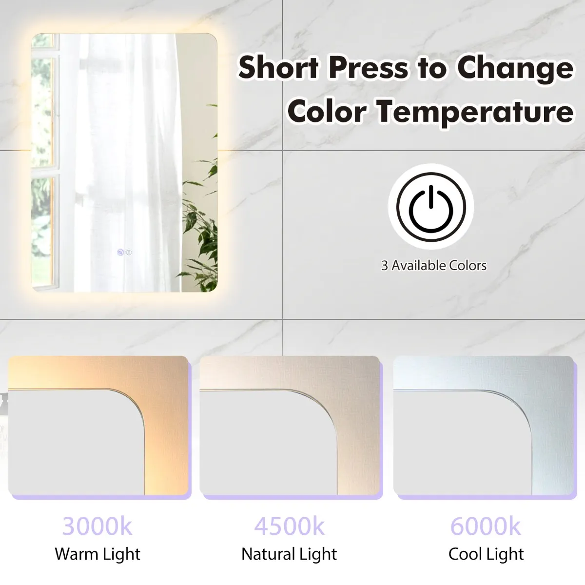 【Traploos dimmen en 3 kleuren】: Onze LED badkamerspiegel heeft traploos dimmen en 3 beschikbare lichtkleuren. Kies tussen warm (3000K), natuurlijk (4500K) en wit (6000K) met een korte druk op de aan/uit-schakelaar en houd deze ingedrukt om de helderheid aan te passen van 100% tot 10% voor verschillende stemmingen en behoeften.