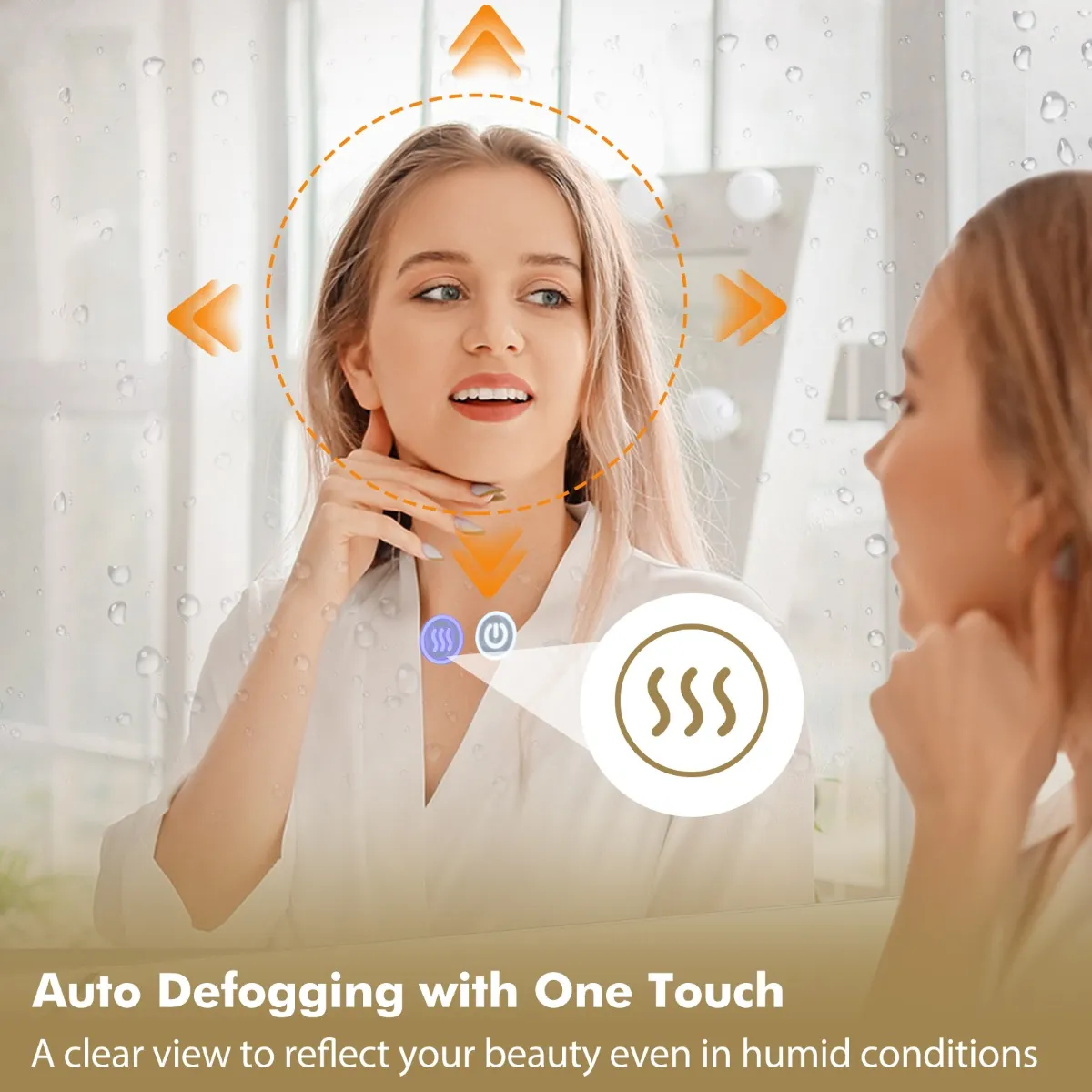 【Automatisch ontwasemen】: Nooit meer beslagen spiegels en vervelend afvegen met hardnekkige watervlekken. De eenknops automatisch dimmende functie van deze make-upspiegel zorgt voor een helder zicht om je schoonheid te weerspiegelen, zelfs in natte omstandigheden zoals tijdens of na het douchen, en schakelt automatisch uit na 1 uur voor het geval je het vergeet.