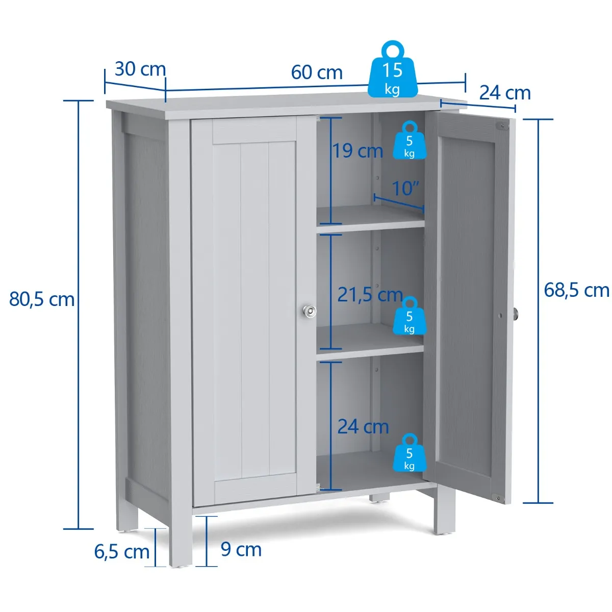 - Totale afmetingen: 60 cm x 30 cm x 80,5 cm (l x b x h)