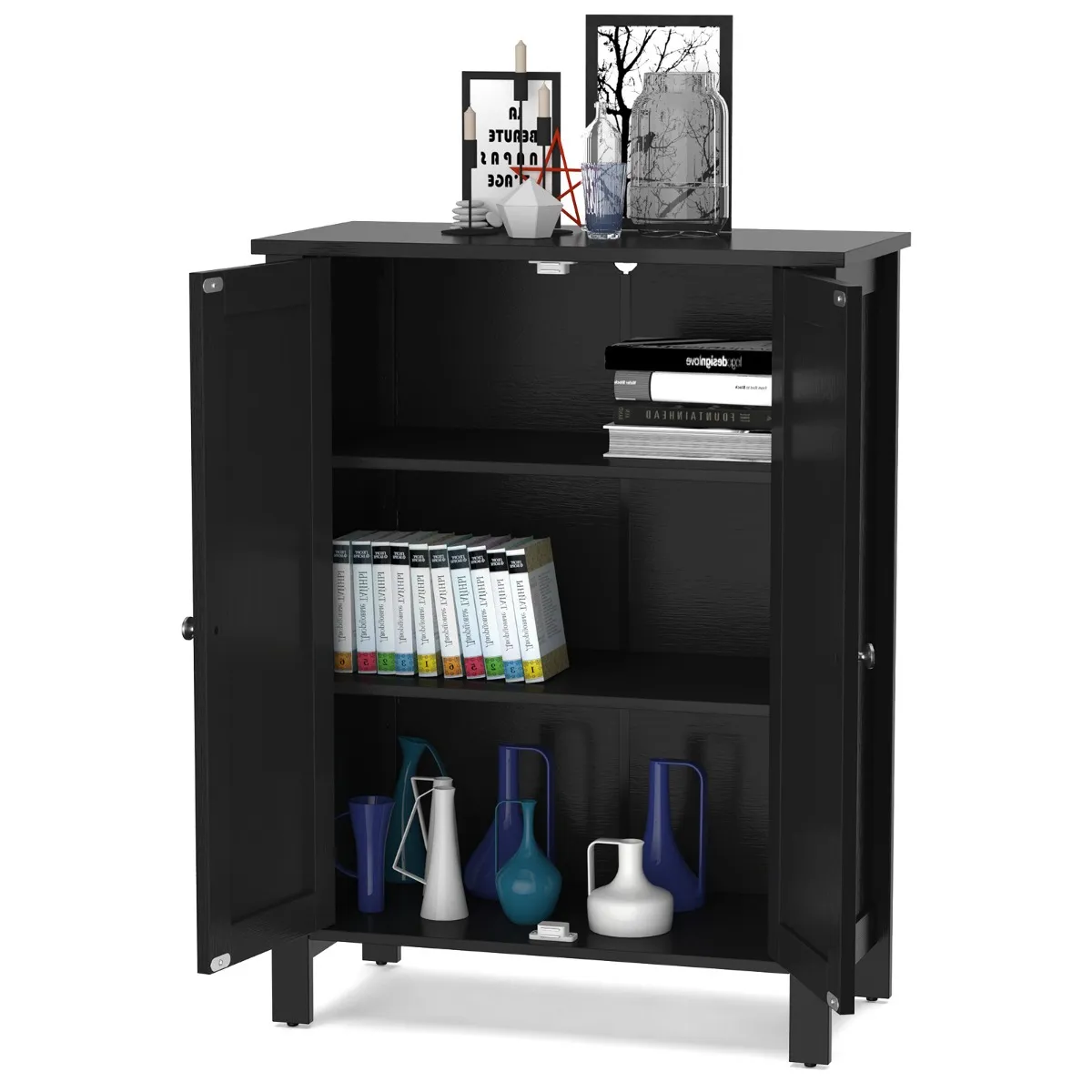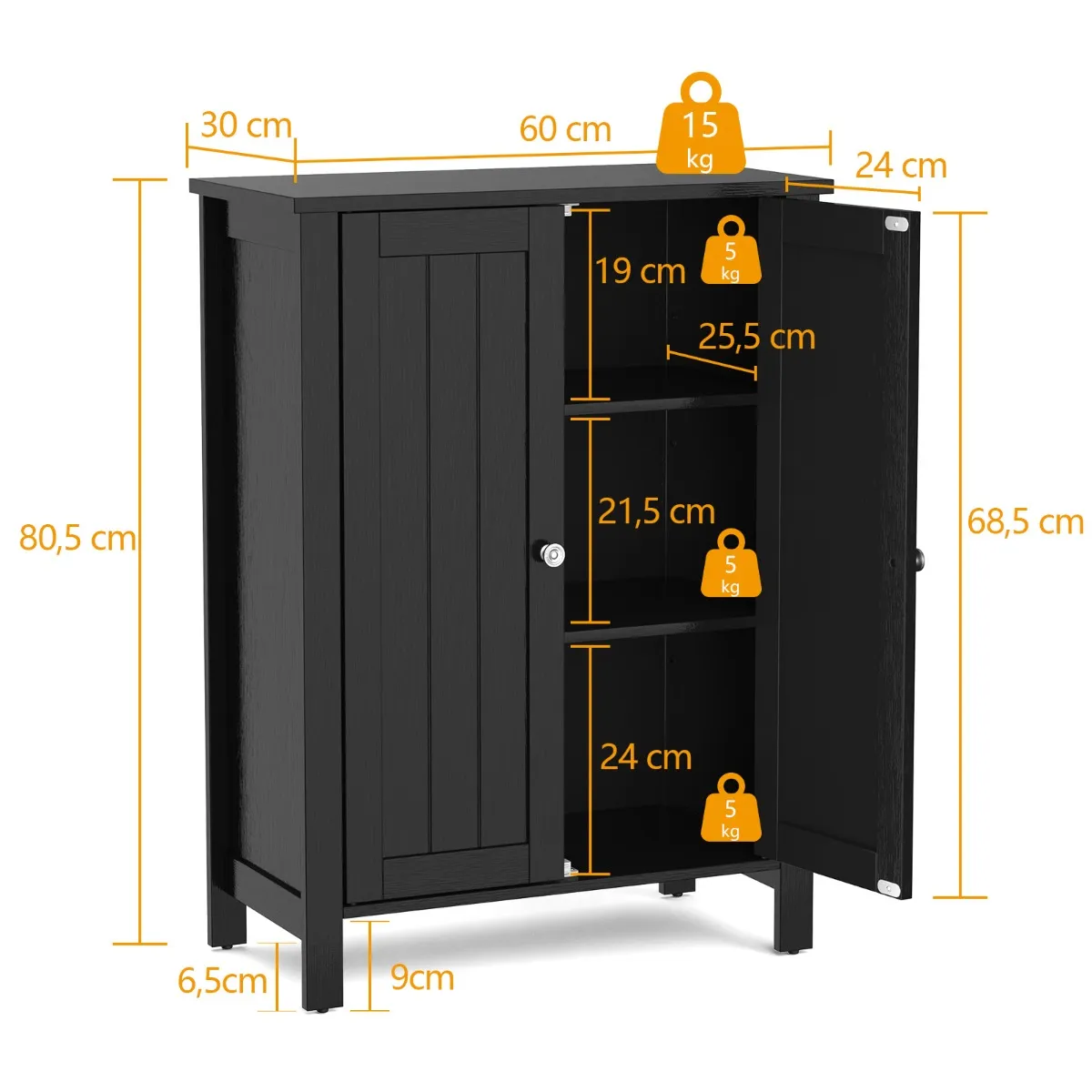 Badkamerkast Bijzetkast Dressoir Met Dubbele Deur En Verstelbare Plank Houten Opbergkast Keukenkast 60 X 30 X 80,5 Cm-Zwart