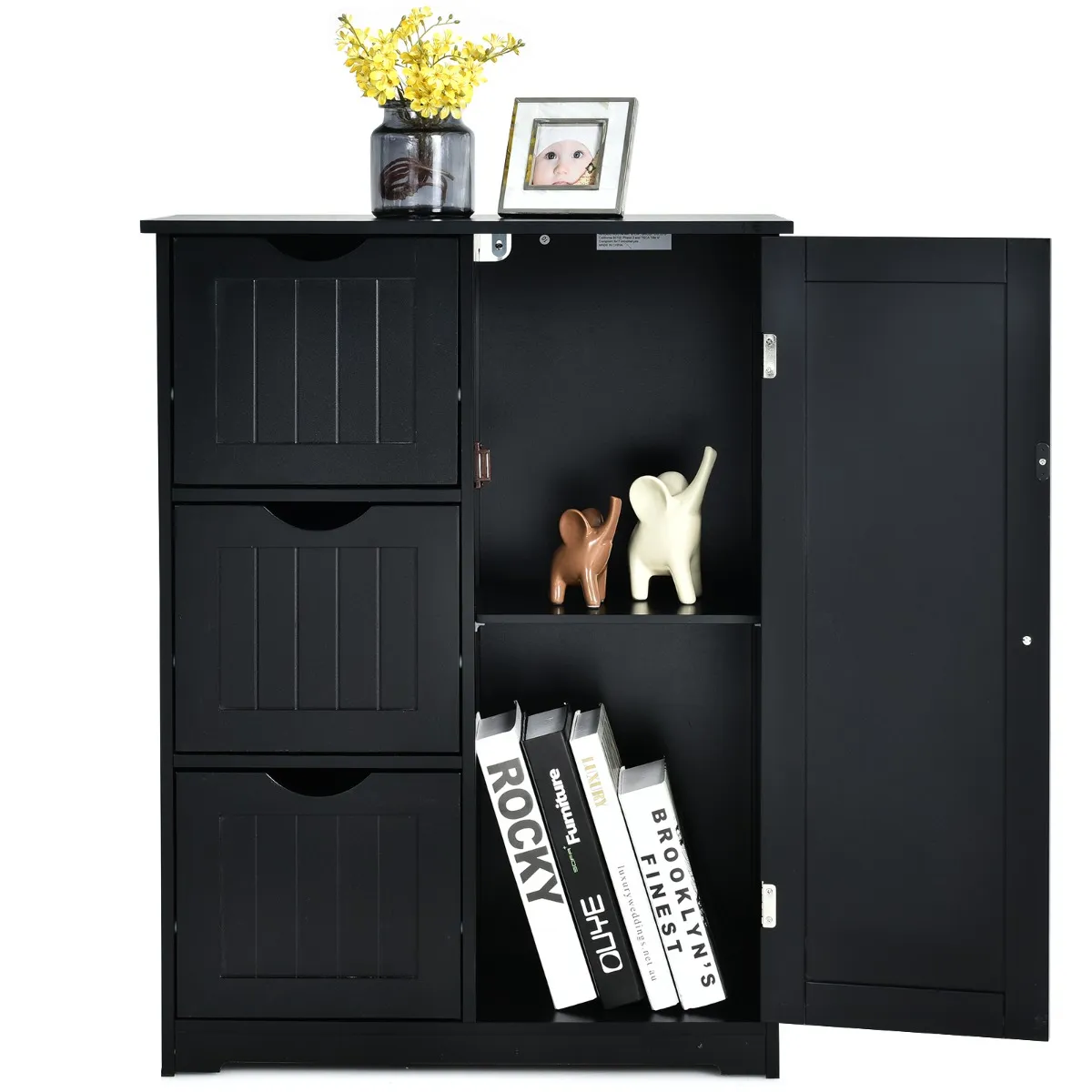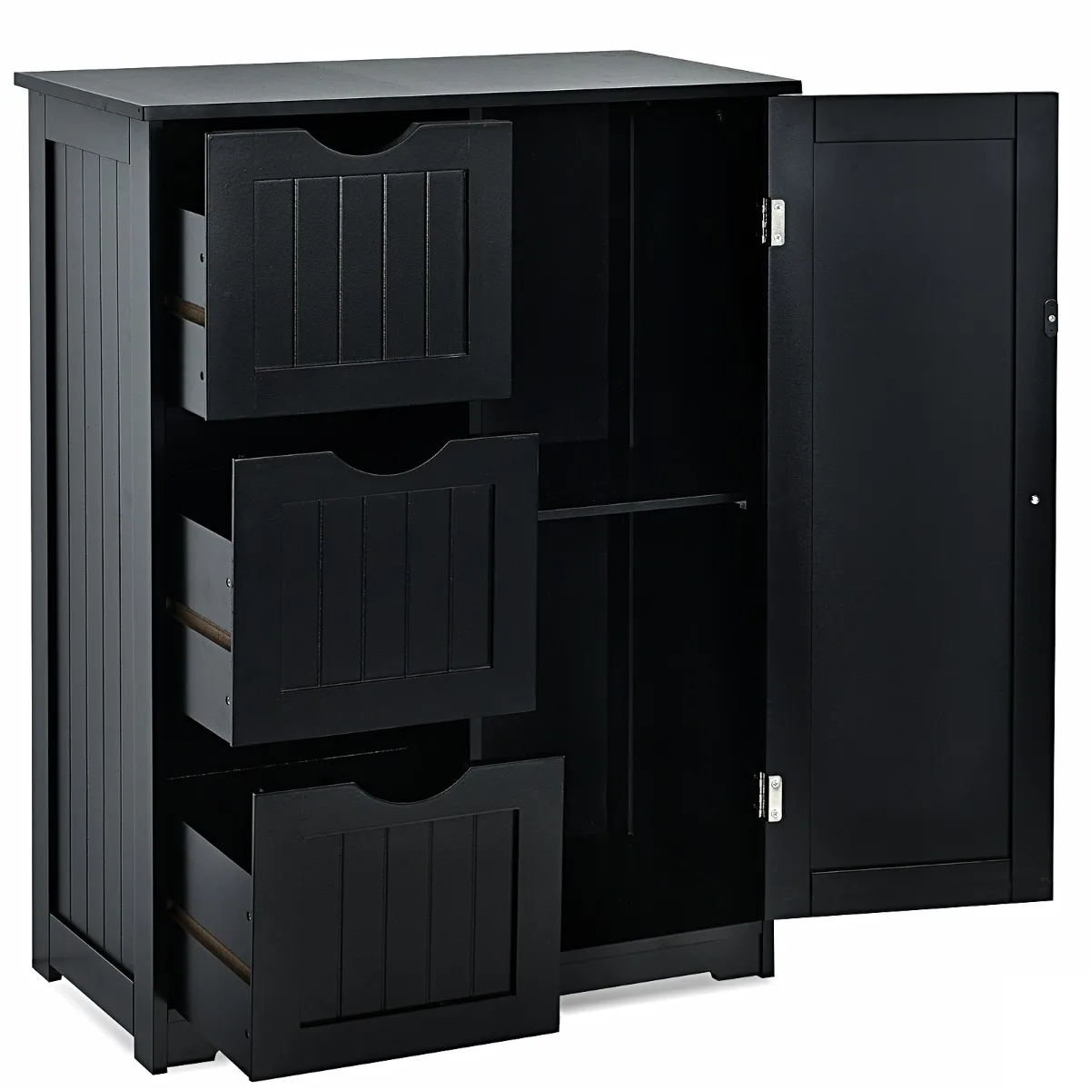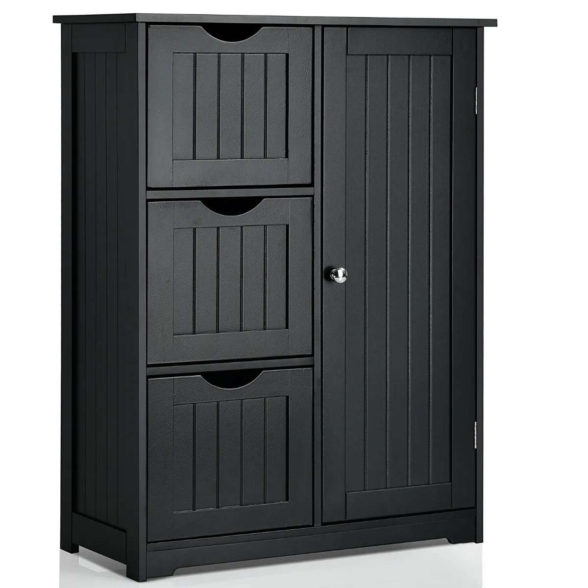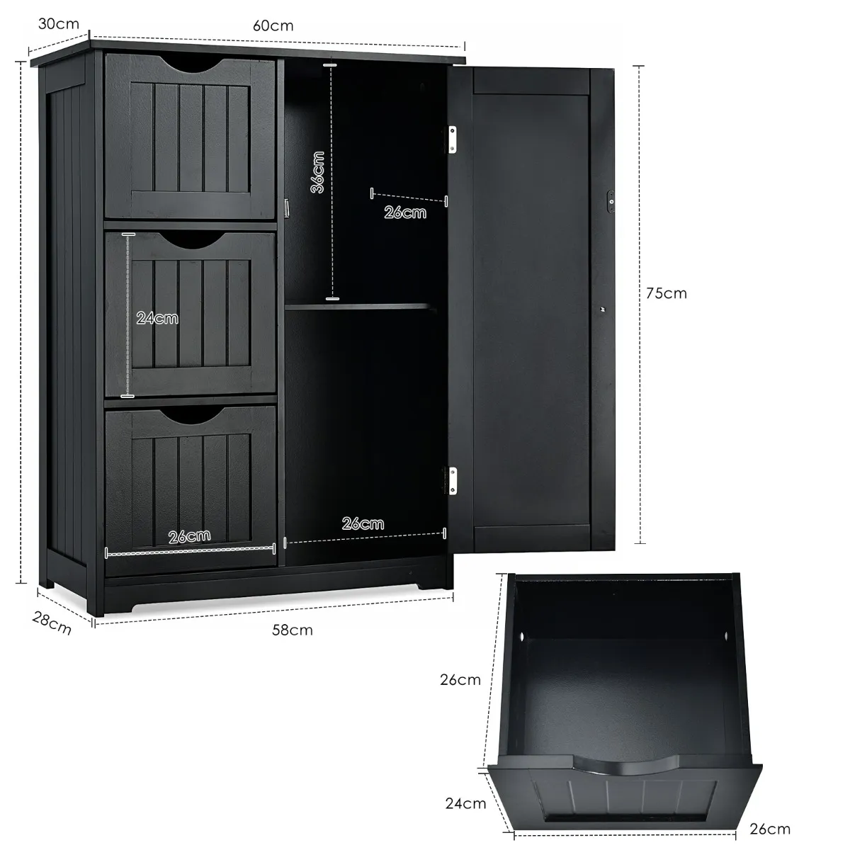 3 lades en een kast met voldoende ruimte zijn perfect voor het opbergen van spullen. En de kastplank kan worden losgemaakt of in drie standen worden versteld. Gemaakt van een plaat met hoge dichtheid, is de kast robuust en duurzaam voor een lange tijd. Met een anti-kantelvoorziening is het niet gemakkelijk om in de kast te vallen bij gebruik. Bovendien is de kastdeur voorzien van een magnetische knop om te voorkomen dat spullen eruit vallen en een ronde handgreep voor gemakkelijk openen en sluiten. Deze veelzijdige kast kan niet alleen worden gebruikt in de badkamer, maar kan ook in uw slaapkamer, woonkamer en keuken worden geplaatst als losstaand opbergmeubel.
