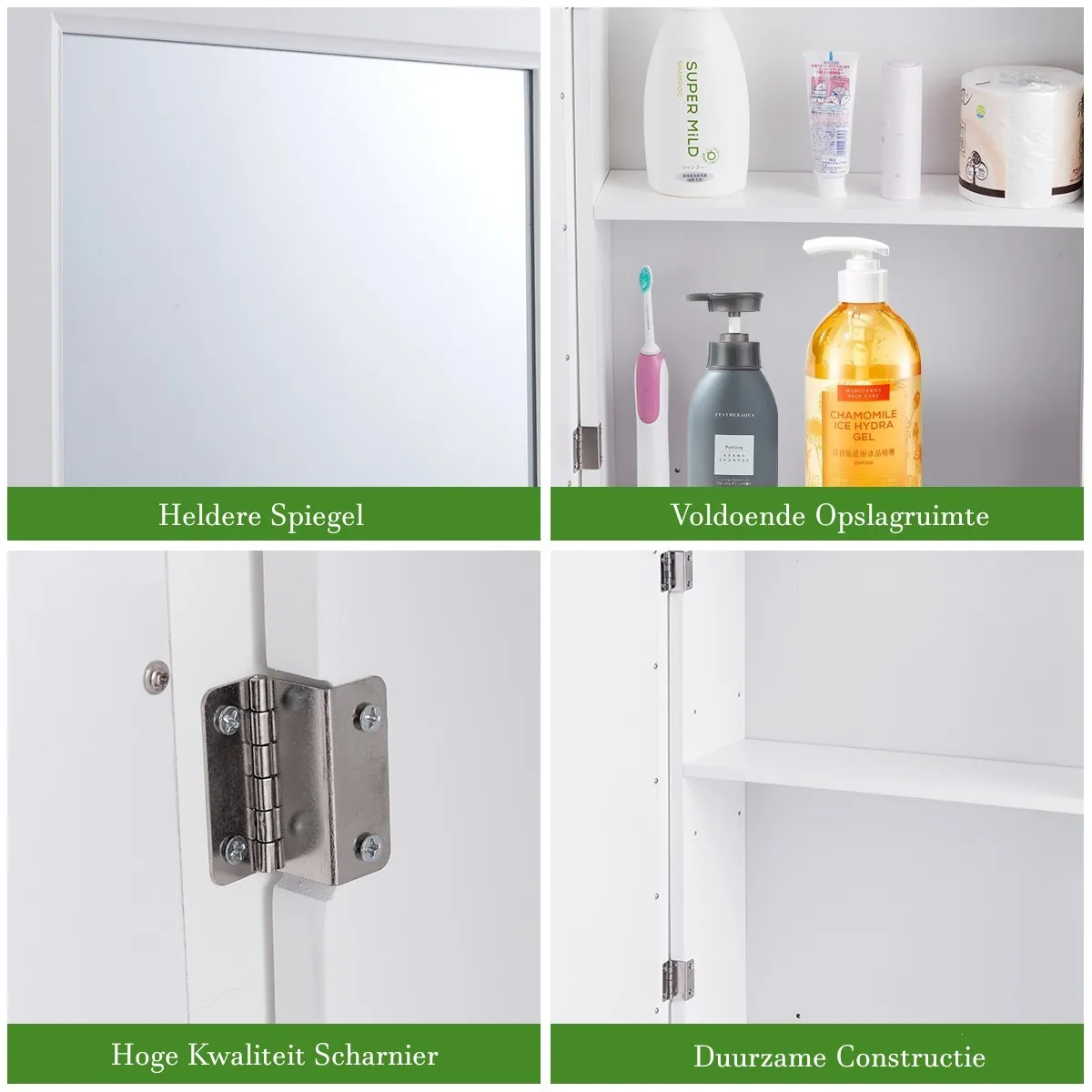 - Inbegrepen in de verpakking: 1 x Badkamerkast/ Badkamer spiegelkast1 x Instructie