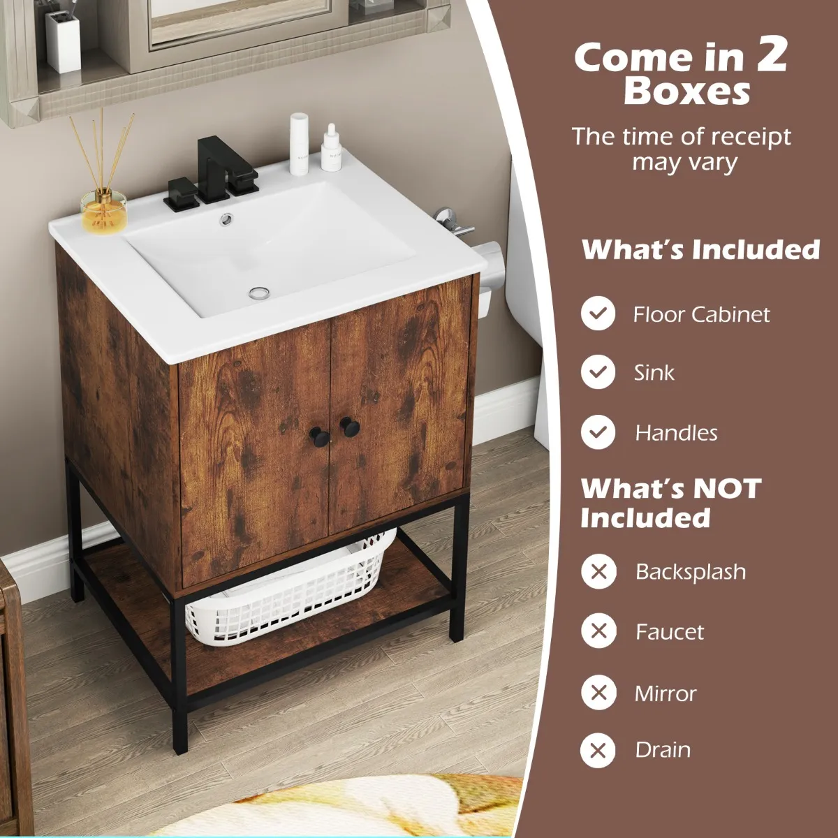 【Badkamerkast】: Wat is INBEGREPEN in het pakket: een onderkast, een wastafel en handgrepen. UITGESLOTEN: achterwand, kraan, spiegel en afvoer. Het pakket wordt geleverd in 2 dozen met gedetailleerde instructies en genummerde onderdelen om het installatieproces te vereenvoudigen.
