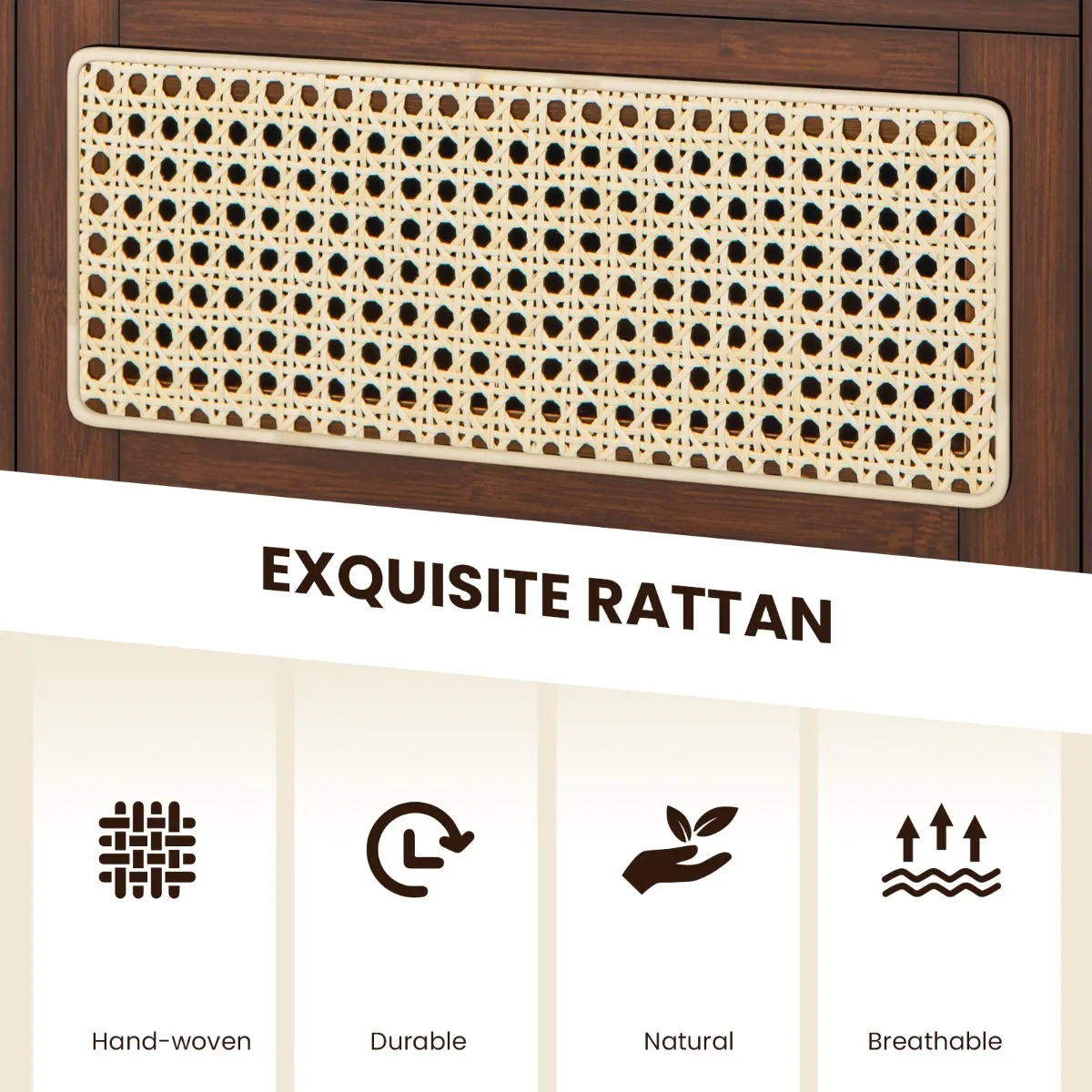 Mooier voor de inrichting: Deze bijzettafel combineert braamvrij bamboehout en echt rotan, waardoor het er eleganter uitziet. En de houtnerf voegt een rustiek tintje toe dat perfect bij je interieur past.