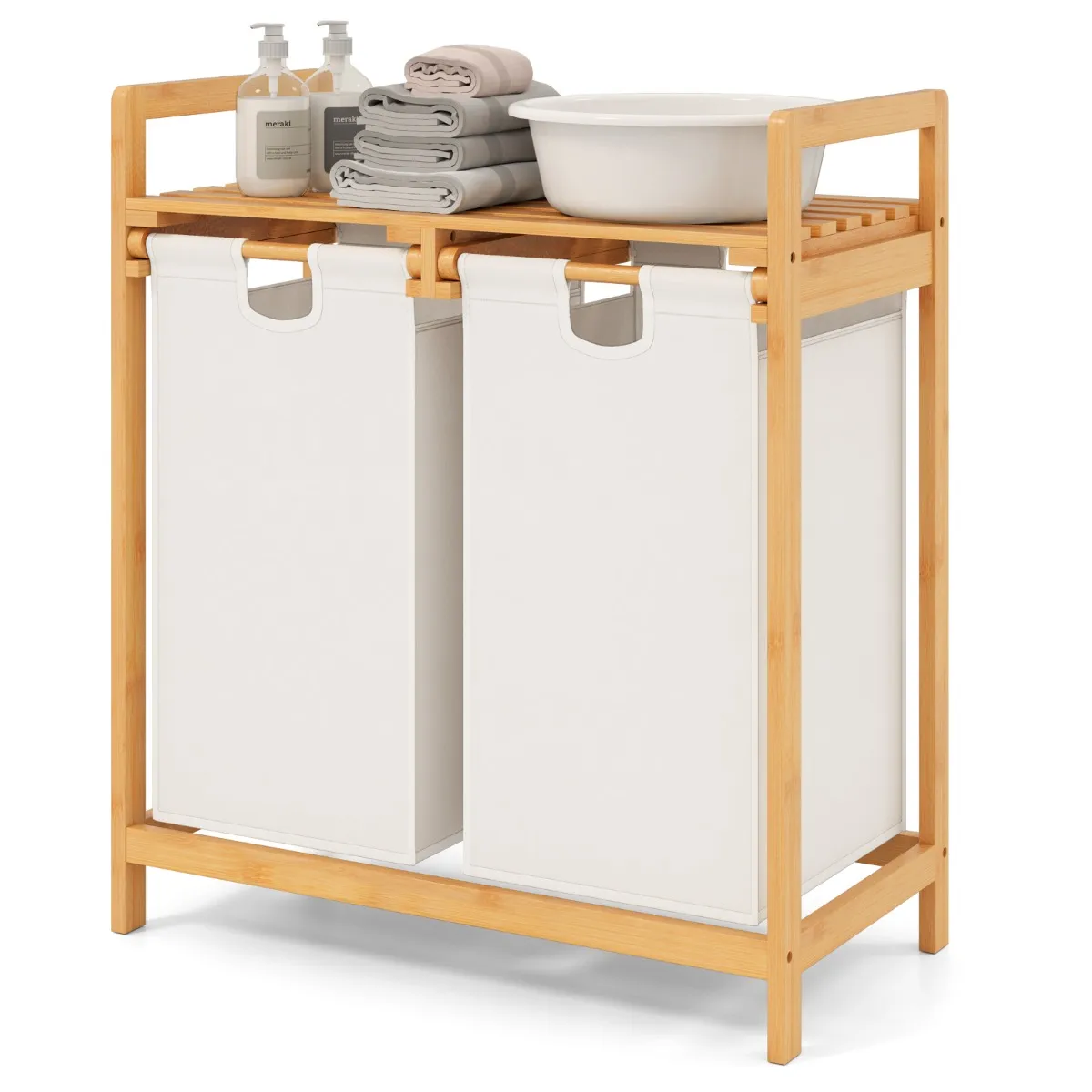 Deze bamboe wasmand met twee compartimenten is de perfecte opslagoplossing voor uw wasgoed!
