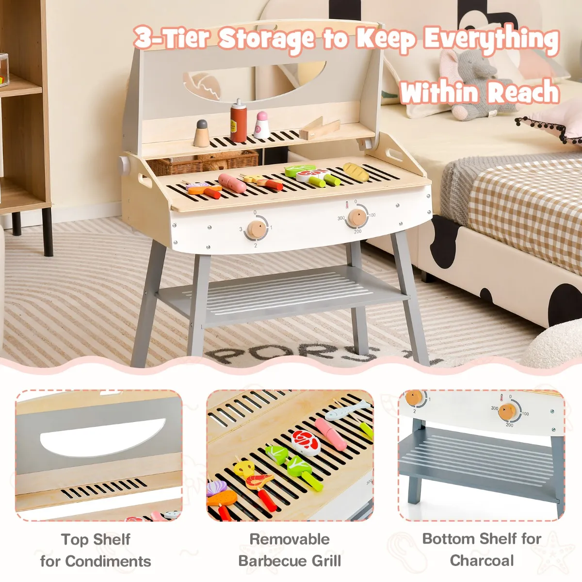 Breed gebruik en 3-traps opslag: De speelgoedgrillset voldoet volledig aan de ideeën van kinderen en kan binnen en buiten worden verplaatst. Bovendien beschikt hij over een 3-traps design, waaronder een bovenste plank, een middelste grill en een onderste plank, die meer speelgoed binnen handbereik mogelijk maakt.