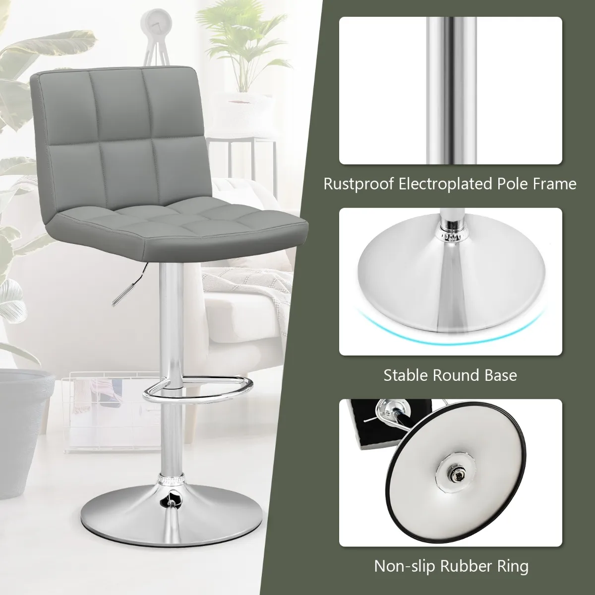 Onze barkrukset heeft een verstelbare zithoogte van 65 tot 85 cm en een 360° draaibare zitting. Dompel jezelf onder in luxueus comfort met de schuine rugleuning, gewatteerde zitting en voetensteun, die de druk op de benen kunnen verminderen als je lang zit. Ze zijn gemaakt van PU leer en comfortabele spons. Het stevige frame kan tot 150 kg dragen en de brede metalen voet met antislip rubberen ring zorgt voor stabiliteit en voorkomt wegglijden. Transformeer je bar, restaurant of café met deze veelzijdige en stijlvolle set.