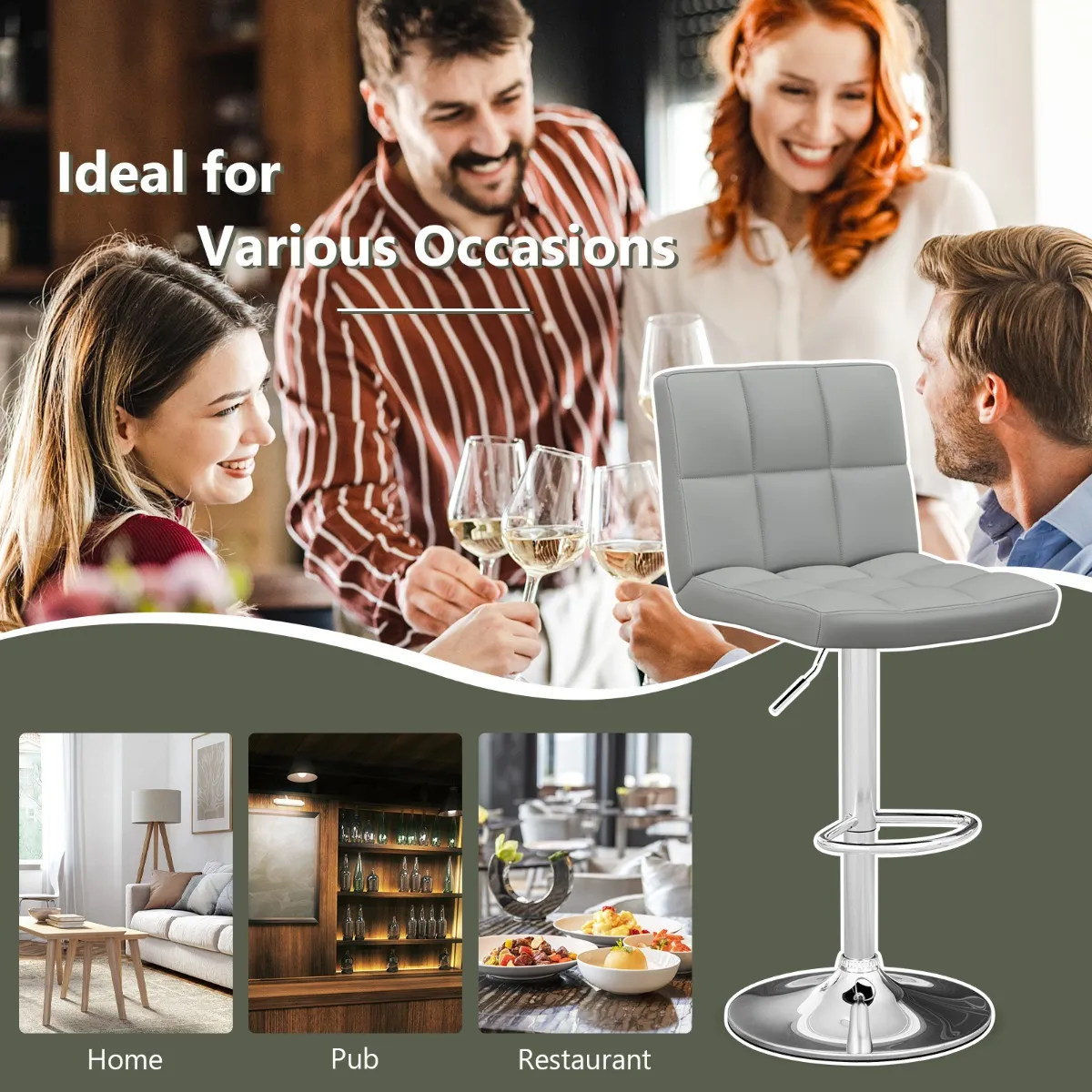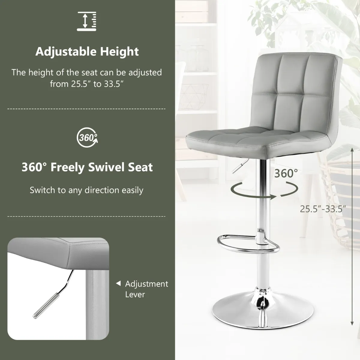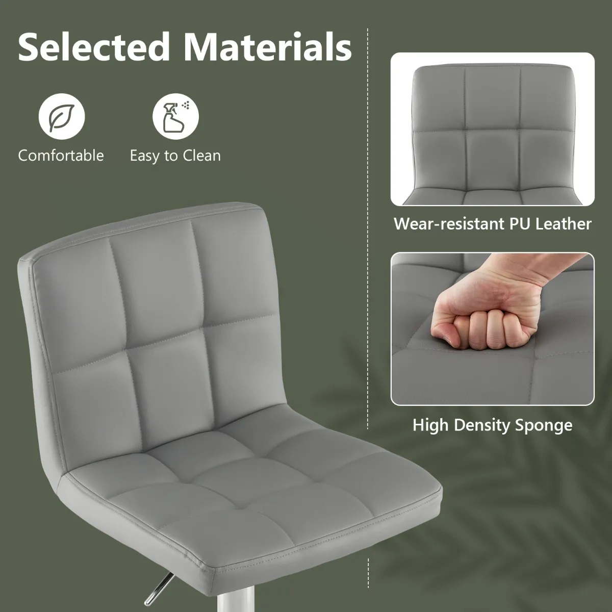 Onze barkrukset heeft een verstelbare zithoogte van 65 tot 85 cm en een 360° draaibare zitting. Dompel jezelf onder in luxueus comfort met de schuine rugleuning, gewatteerde zitting en voetensteun, die de druk op de benen kunnen verminderen als je lang zit. Ze zijn gemaakt van PU leer en comfortabele spons. Het stevige frame kan tot 150 kg dragen en de brede metalen voet met antislip rubberen ring zorgt voor stabiliteit en voorkomt wegglijden. Transformeer je bar, restaurant of café met deze veelzijdige en stijlvolle set.