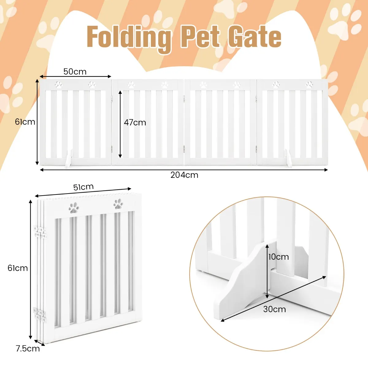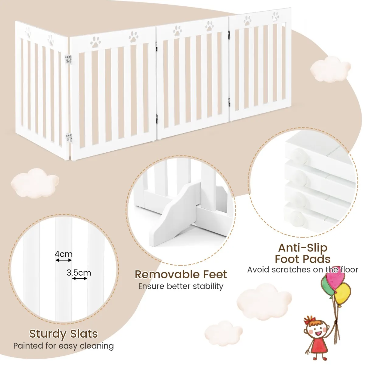 Het MDF frame zorgt voor stabiliteit, het gelakte oppervlak gaat langer mee. Bovendien zorgen de twee poten ervoor dat het geheel stabiel blijft en is het afneembaar voor opslag. Het hondenhek heeft wetenschappelijke openingen om pletten te voorkomen. Bovendien heeft het hondenhek 360° draaibare scharnieren die flexibel gebruik en compacte opslag vergemakkelijken. Er zijn antislip voetkussentjes om de vloer te beschermen. Over het geheel genomen is het opvouwbare hondenhek geschikt voor veranda’s, keukens, trappen, enz.