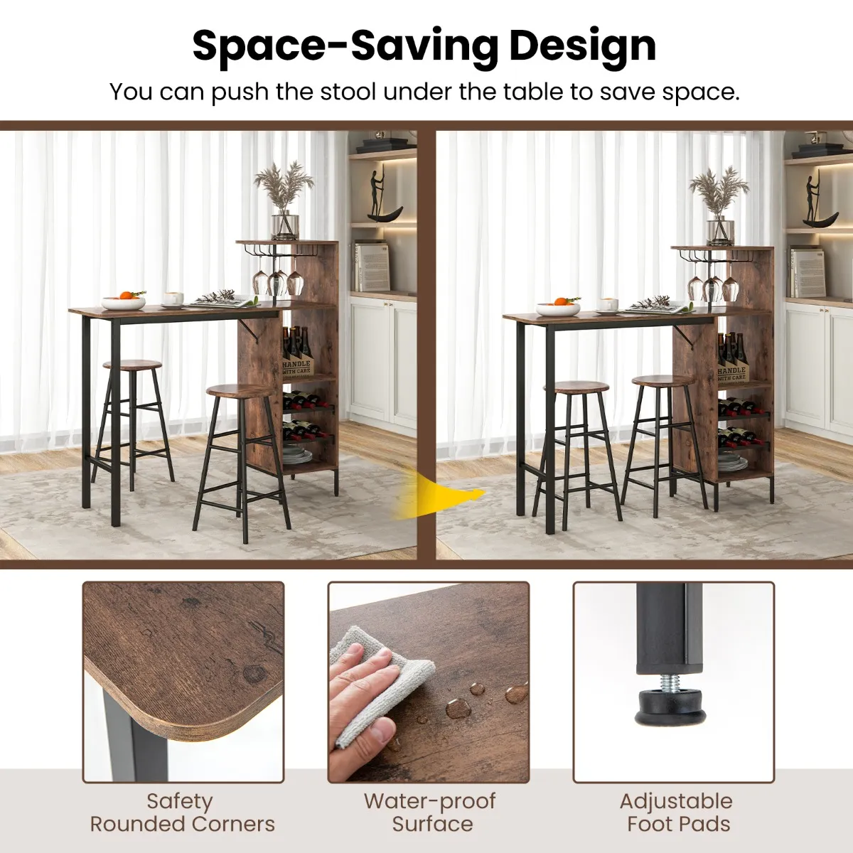 Ontworpen voor wijnliefhebbers: De bartafel biedt opbergruimte op maat voor wijnen en steelware. De wijnglashouder onder het tafelblad is geschikt voor bordeauxglazen, champagneglazen, cocktailglazen, enz., terwijl het 2-tier wijnrek tot 6 flessen kan bevatten. Er zijn ook 3 multifunctionele zijplanken voor keukengerei en andere kleine voorwerpen.
