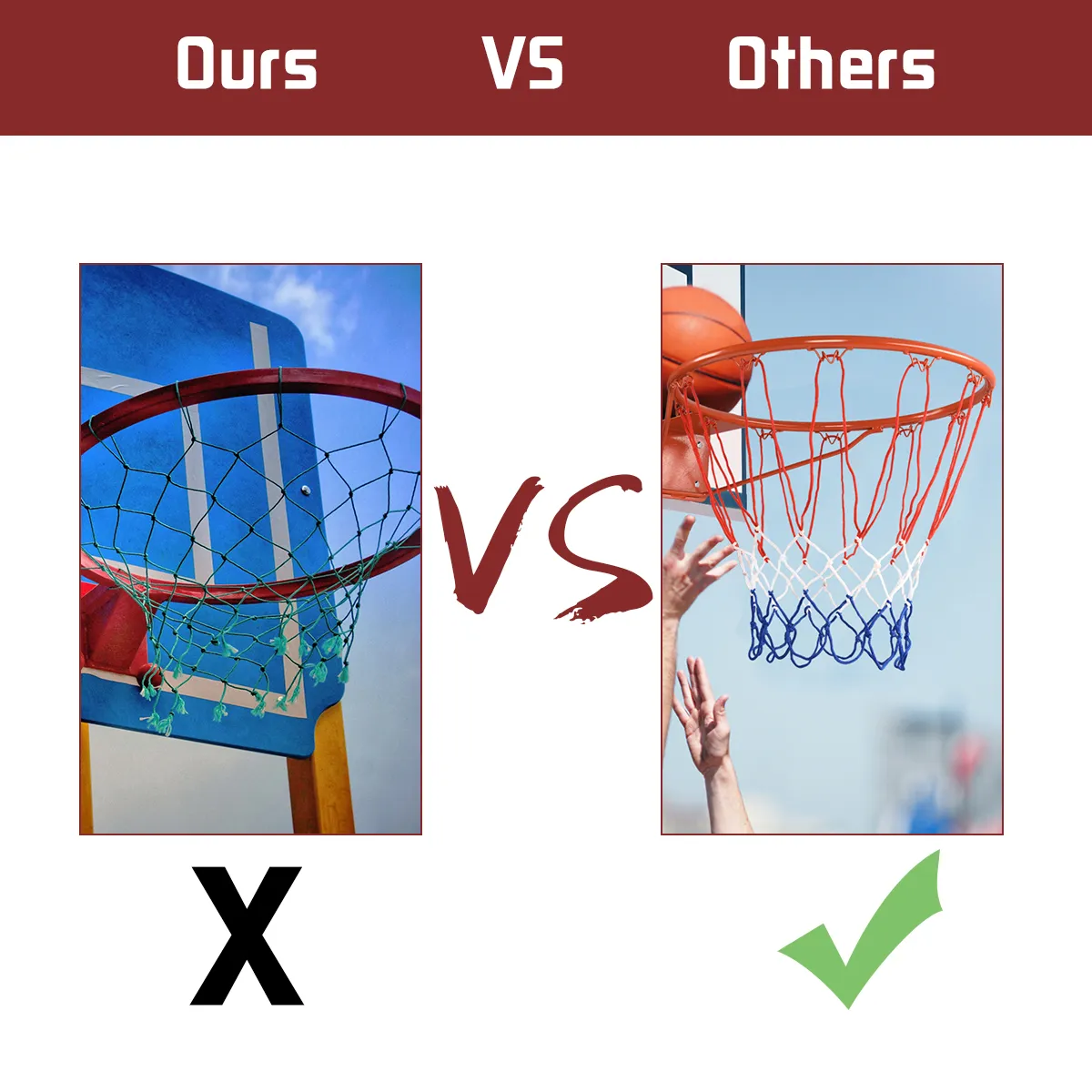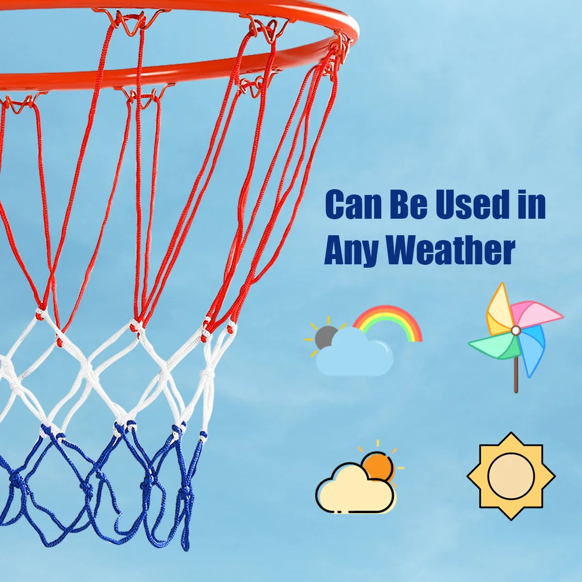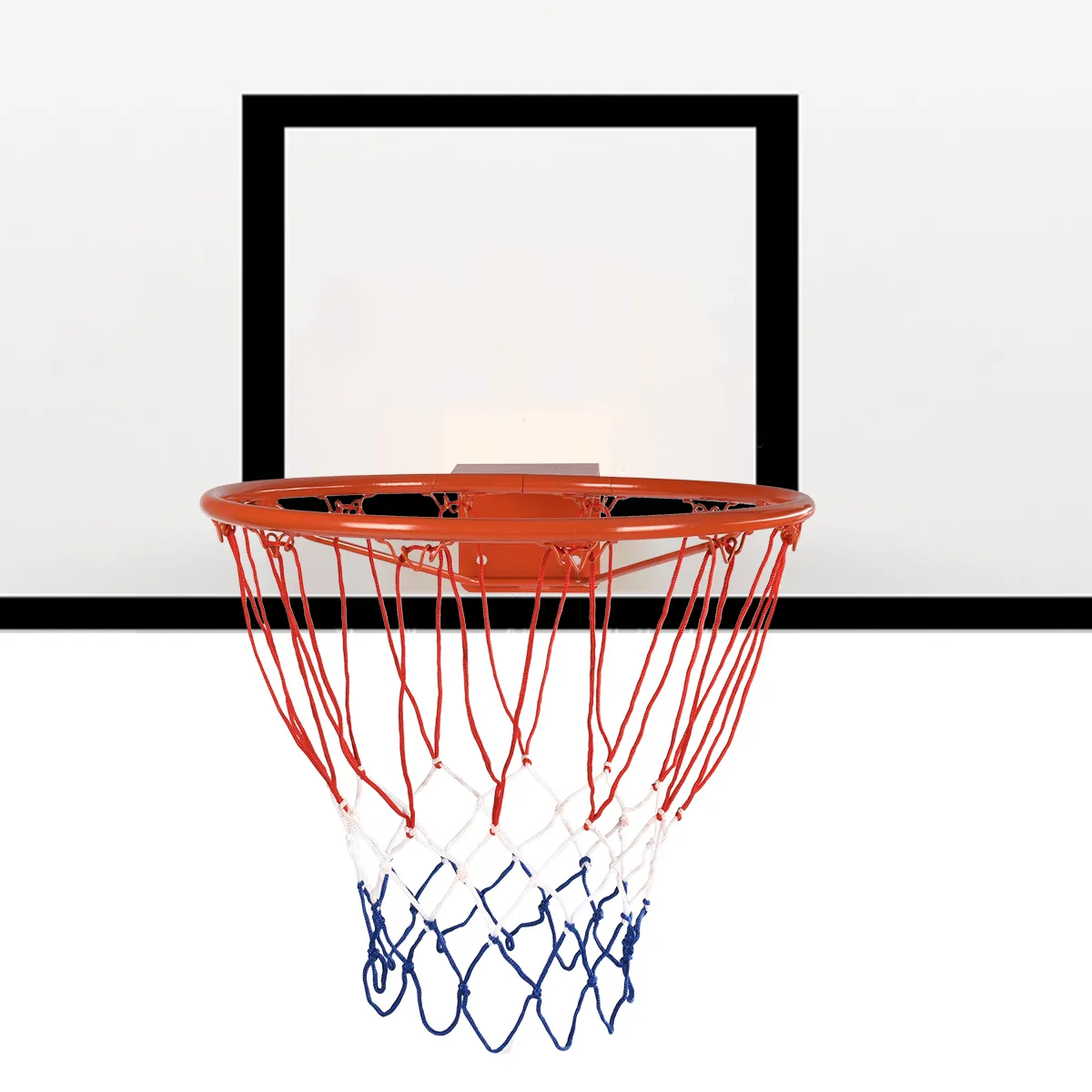 Kan worden gemonteerd op een deur of muur: U kunt deze hoepel op de meeste basketbalstandaards van gemiddelde grootte monteren. Het wordt geleverd met expansieschroeven en kan ook eenvoudig aan deuren of aan een muur worden bevestigd. Het net heeft een kleurrijk ontwerp in rood, wit en blauw, waardoor je het op het veld kunt zien, ideaal voor het gooien van een perfecte basket.
