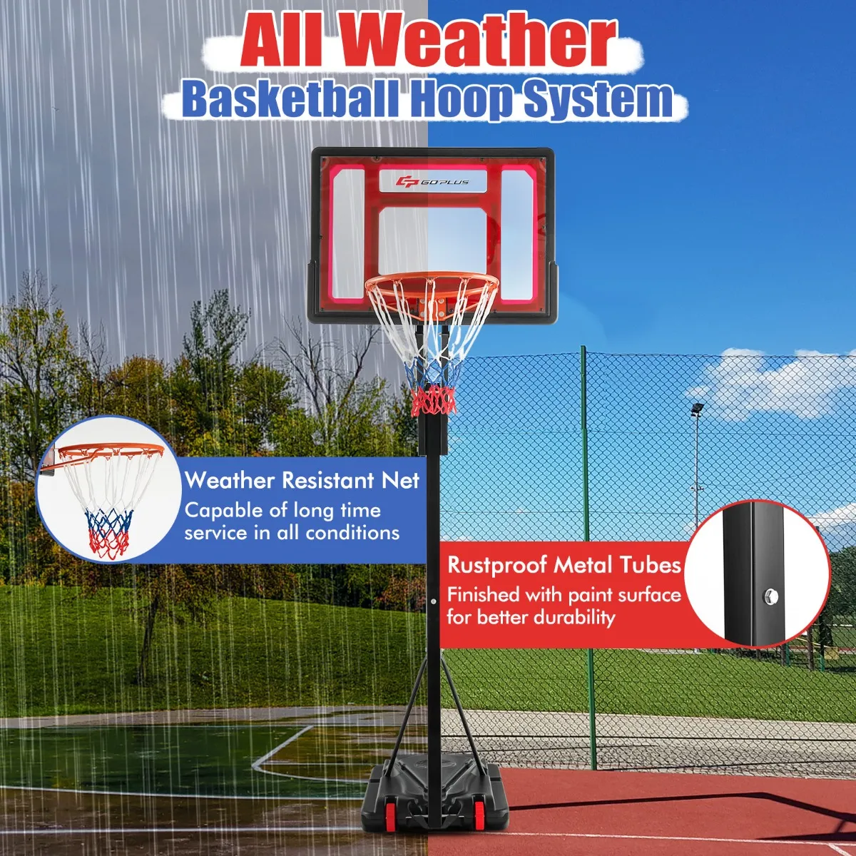 Met 5 verstelbare gaten en afneembare centrale buis kan deze basketbalstandaard op 10 verschillende hoogtes worden ingesteld met een bereik van 1,55 m tot 3,1 m. Het kan perfect voldoen aan de verschillende hoogte-eisen voor kinderen, tieners of volwassenen. Uitgerust met een onbreekbare PET-beugel, een scheurbestendig net en een stevige metalen hoepel, kan dit basketbalstandaard lange tijd gebruikt worden. De grote basis kan worden gevuld met water of zand voor meer stabiliteit. Bovendien kun je de bijgeleverde gewichtzak op de voet plaatsen om de basketbalring stabieler te maken. Deze draagbare basketbalring voor alle weersomstandigheden met 2 geïntegreerde wielen kan gemakkelijk worden verplaatst en in de tuin of op de oprit worden geplaatst. Dan kun je urenlang basketballen met kinderen of vrienden.