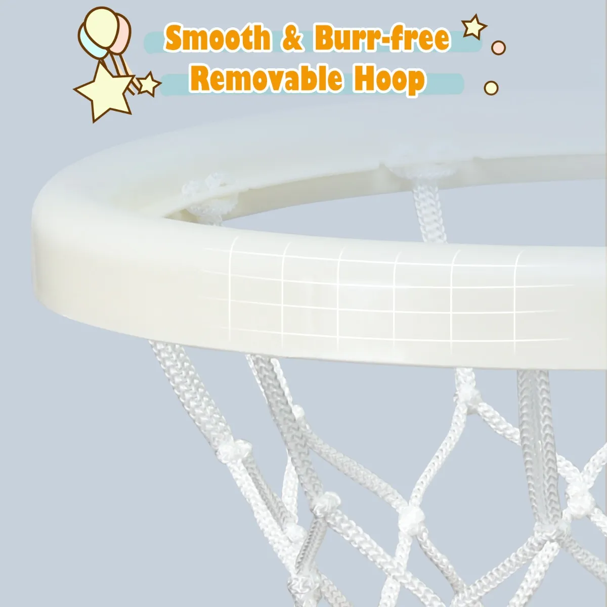 【3-in-1 activiteitencentrum】 Onze basketbalstand omvat 3 activiteiten: basketbal spelen, cirkels gooien en voetballen. Inclusief 1 basketbal, 1 voetbal, 4 ringen en 1 inflator, kunnen kinderen meteen beginnen met basketballen en plezier hebben. Ook kunnen kinderen samen spelen om hun concurrentievermogen en team levenskracht te oefenen.