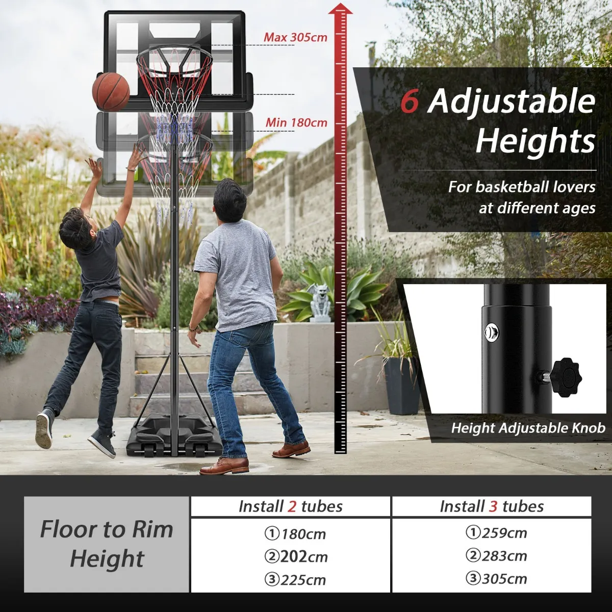 【Modieuze uitsraling & Gemakkelijke assemblage】Met transparante achterwand, kleurrijk net en zwart stalen frame, de familie basketbal hoepel ziet er mode en cool. Bovendien zullen wij hulpmiddelen en gedetailleerde gebruikershandleiding aanbieden om u te laten de hoogte regelbare basketbal standaard effectief en moeiteloos in een korte tijd assembleren.
