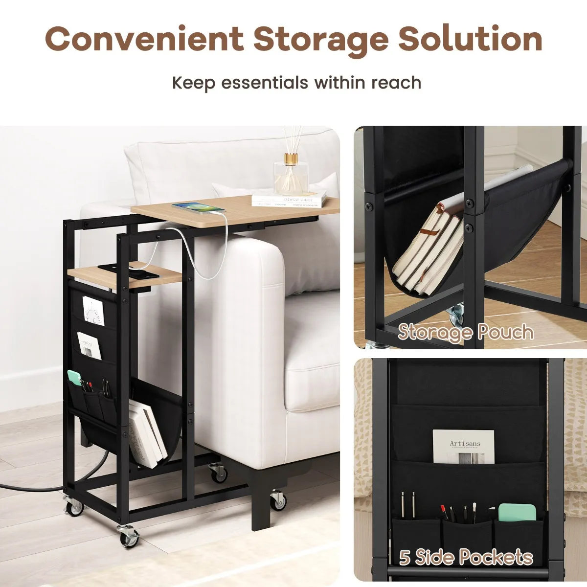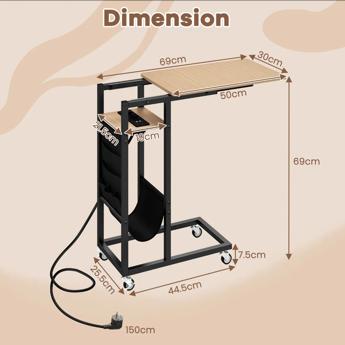 Deze bijzettafel is perfect ontworpen om comfortabel naast je bank of bed te liggen. Hij bespaart niet alleen waardevolle ruimte, maar waardeert je levensstijl met zijn slimme uittrekbare tafelblad op. Geen uitrekken of bukken meer; alles wat je nodig hebt is binnen handbereik. Je stroombehoefte wordt direct aan je zijde voorzien van geïntegreerde AC- en USB-poorten. Zorg voor orde met een elegant zijvak, ideaal voor je tijdschriften of afstandsbedieningen.