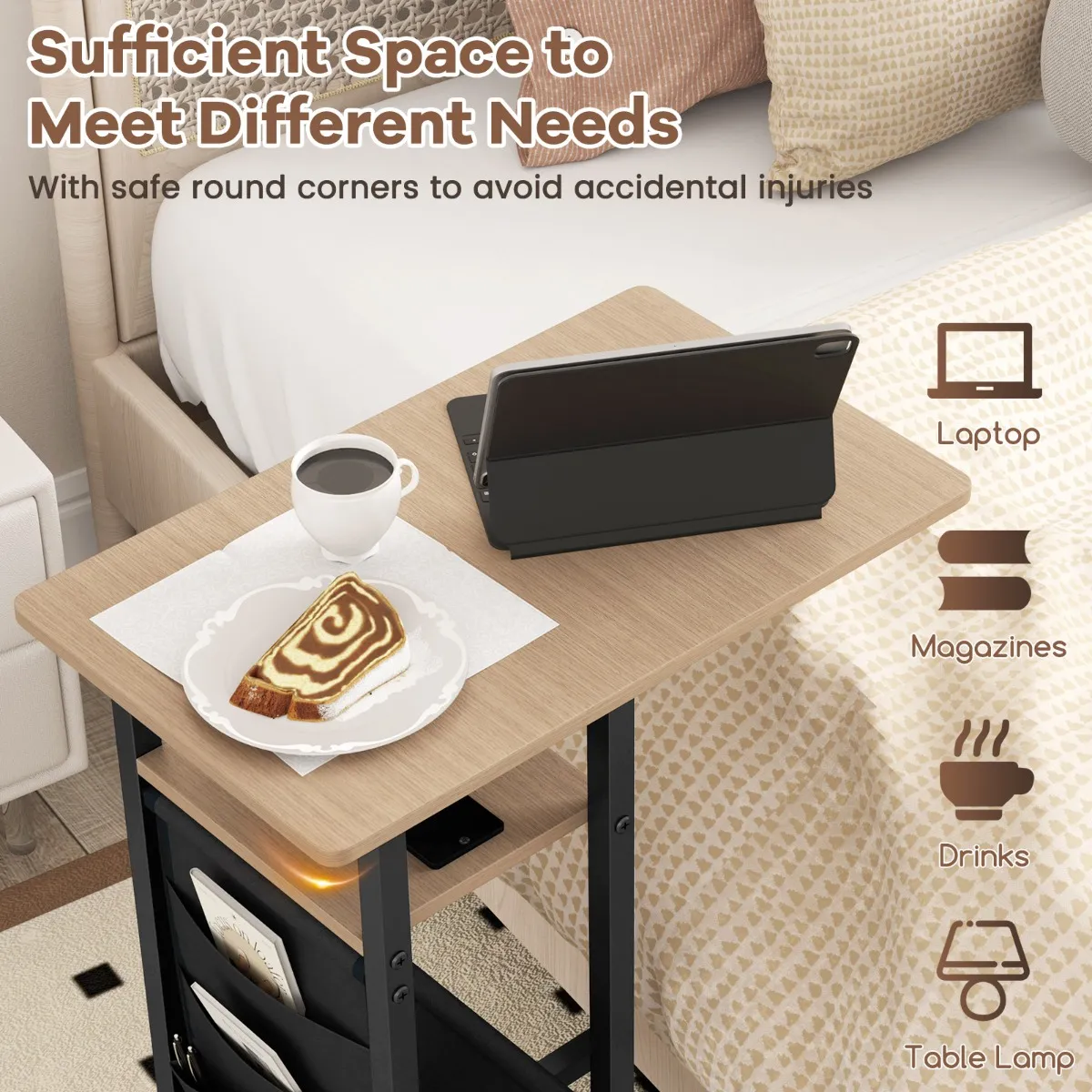 【Een echte ruimtebesparing】Deze C-vormige bijzettafel past perfect op een bank of bed en maximaliseert zo de ruimteefficiëntie in je woonkamer. Het uittrekbare tafelblad biedt gemakkelijke toegang tot je spullen en de afgeronde hoeken minimaliseren het risico op stoten of krassen.