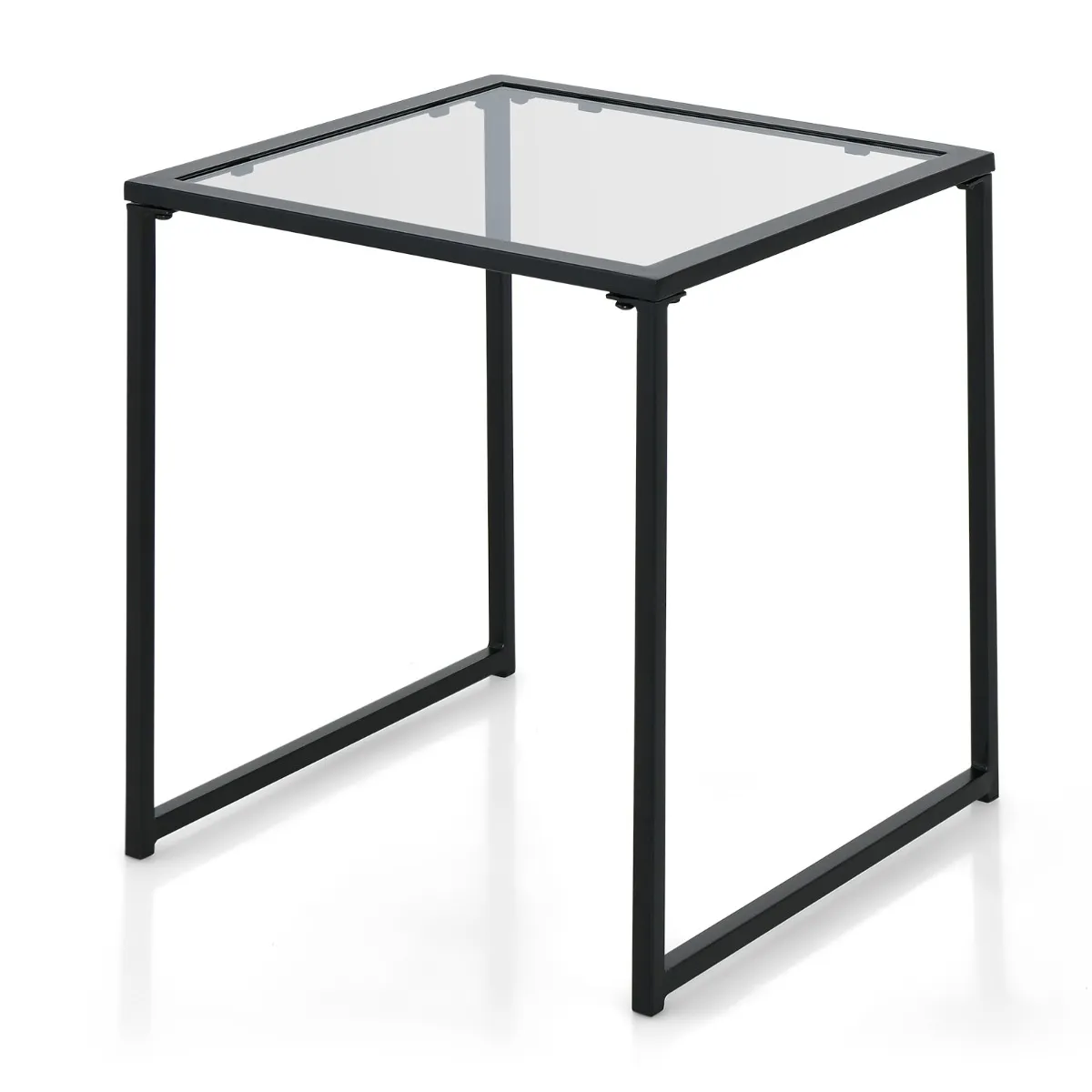 De vierkante bijzettafel voldoet goed aan je opbergbehoeften en zal een perfect stuk in je huis zijn ! Het brede tafelblad biedt voldoende opbergruimte en ruimte voor dagelijkse voorwerpen. Bovendien betekent het solide tafelblad van gehard glas een betere duurzaamheid, een langere levensduur en een hogere stabiliteit. Stabiele metalen poten zijn niet gemakkelijk te breken of te vervormen. Moderne stijl en elegante uitstraling maken deze tafel tot een charmante aanvulling voor woonkamer, veranda, dek of tuin.