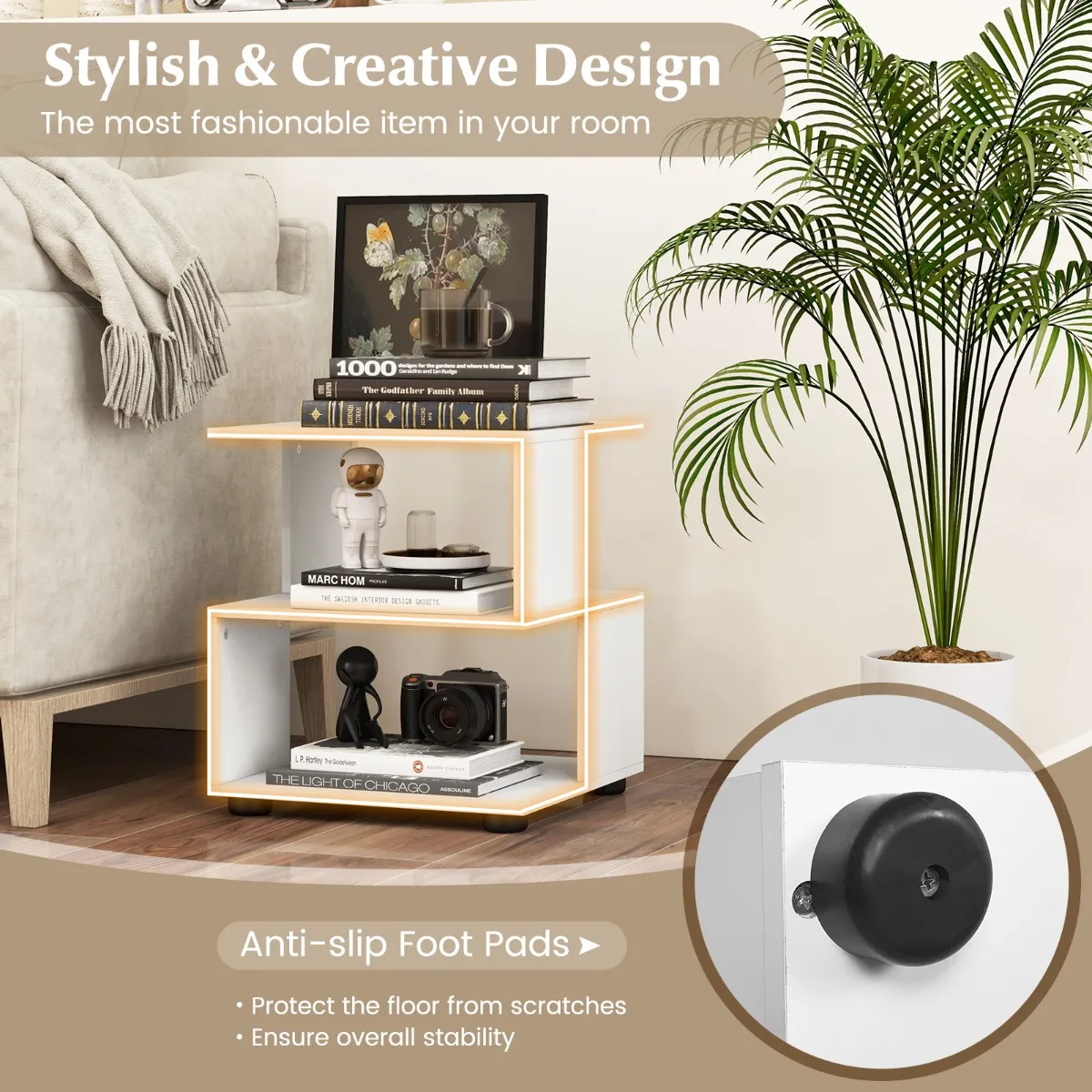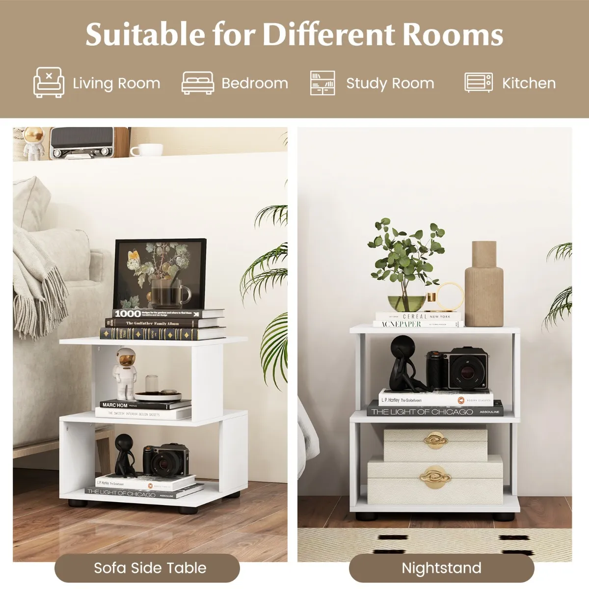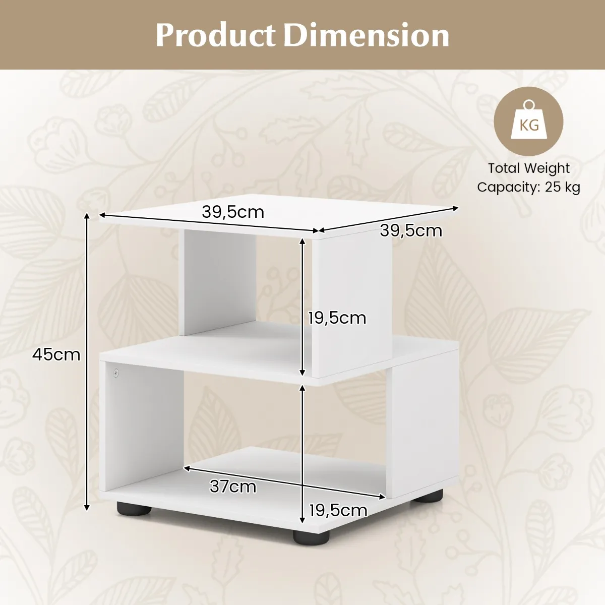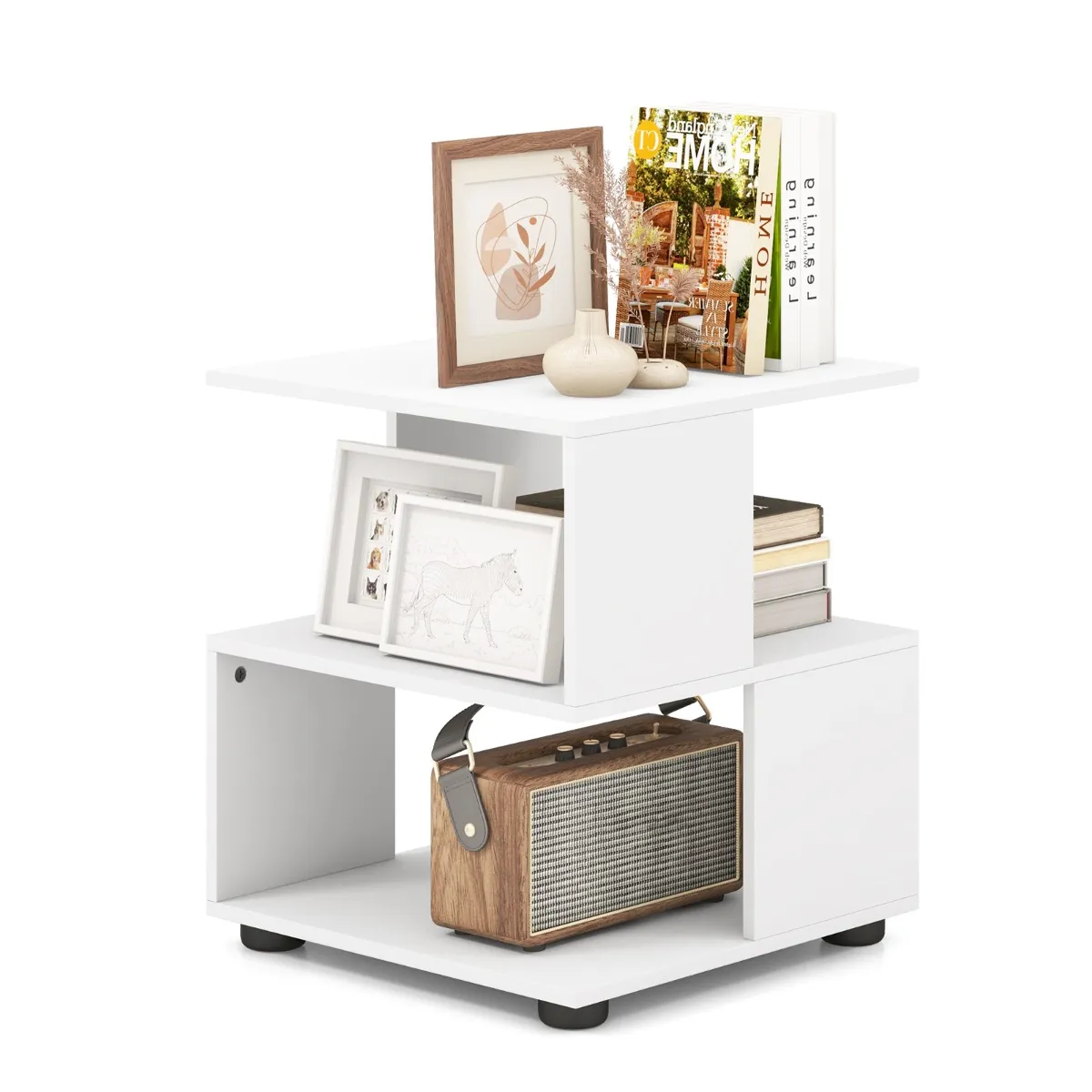 Dit moderne nachtkastje biedt een stijlvol en creatief uiterlijk en is perfect geschikt voor slaapkamers, woonkamers, studeerkamers of kantoren, met extra schoonheid en elegantie. Dankzij het 3-niveaus ontwerp biedt de vierkante nachtkastje met ruime opbergruimte plaats aan veel alledaagse benodigdheden. Bovendien zorgen antislip voetkussens onderaan voor een stabiele structuur, terwijl het waterdichte oppervlak de reiniging en onderhoud vergemakkelijkt. Deze sofa-bijzettafel biedt ook comfort en duurzaamheid, omdat alle onderdelen, gemaakt van hoogwaardig houtmateriaal voor een lange levensduur, eenvoudig in elkaar kunnen worden gezet.