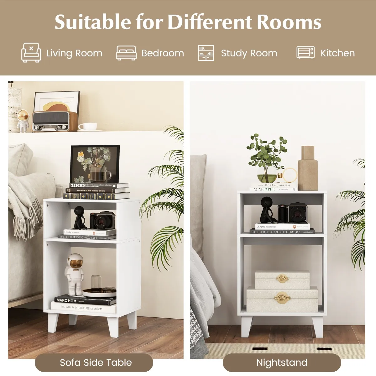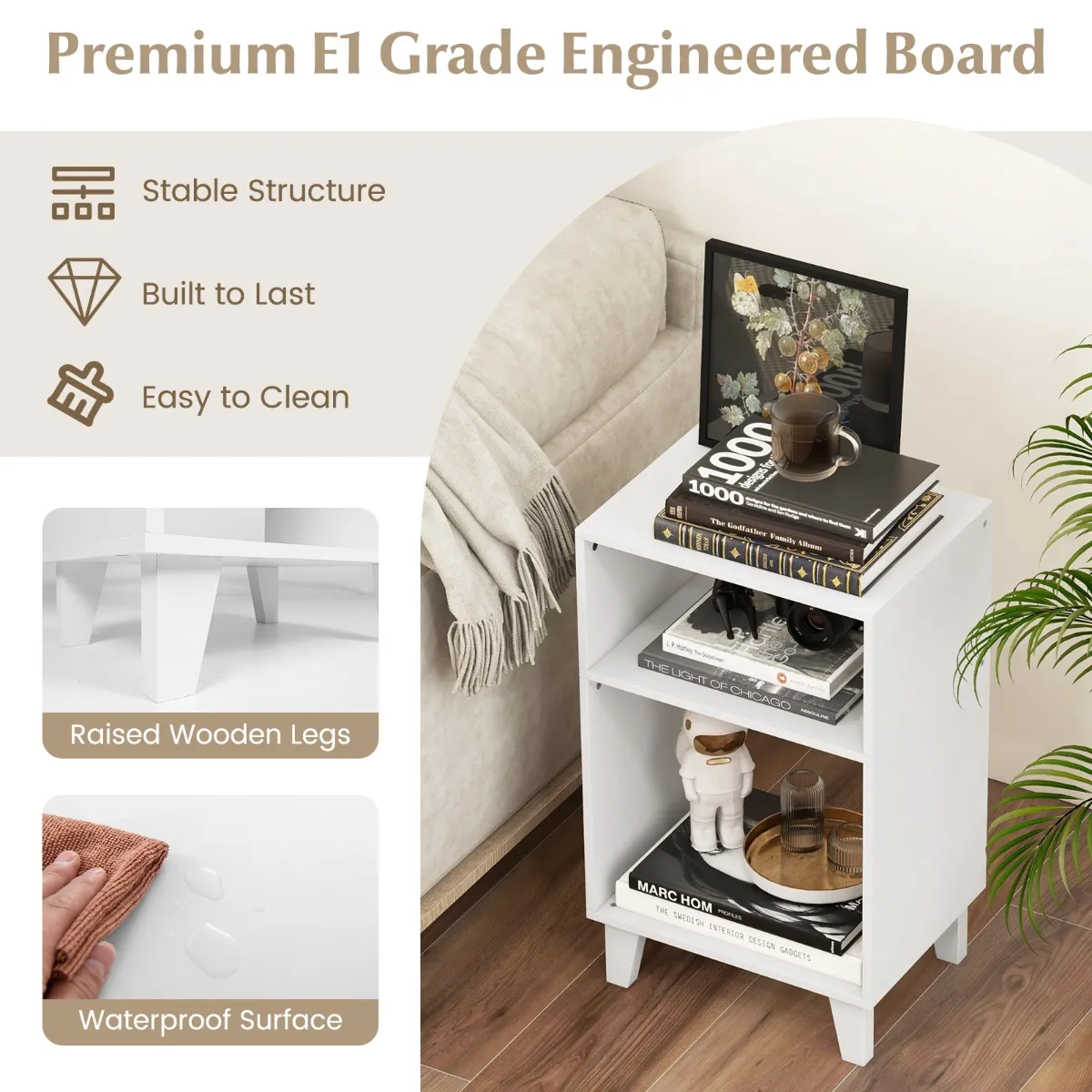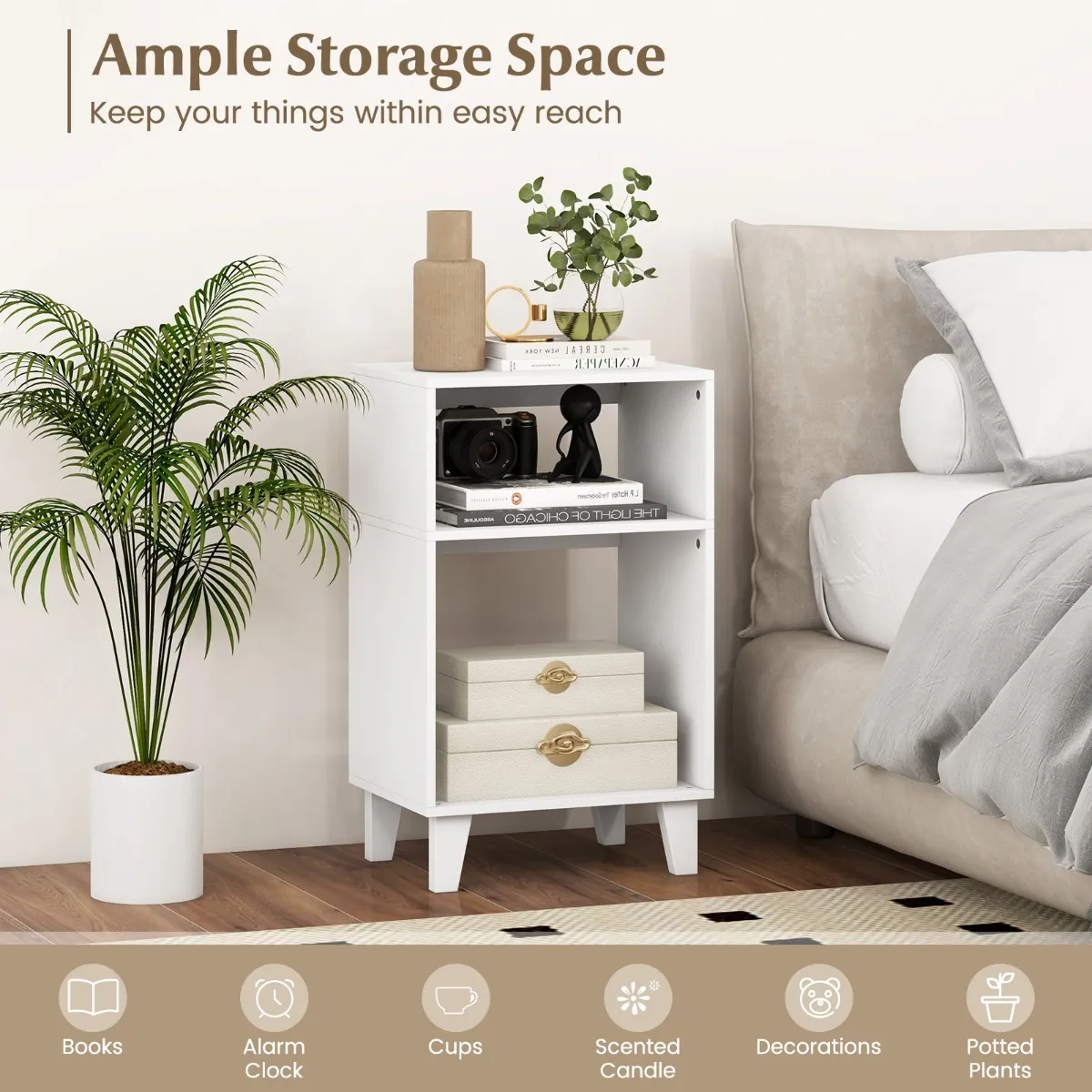 Veel Opbergruimte: Dit nachtkastje met 3 niveaus heeft een ruim tafelblad en 2 open planken die royale opbergruimte bieden voor boeken, decoraties, wekkers, kopjes, geurkaarsen en potplanten, waardoor uw leefruimte georganiseerd en opgeruimd blijft.