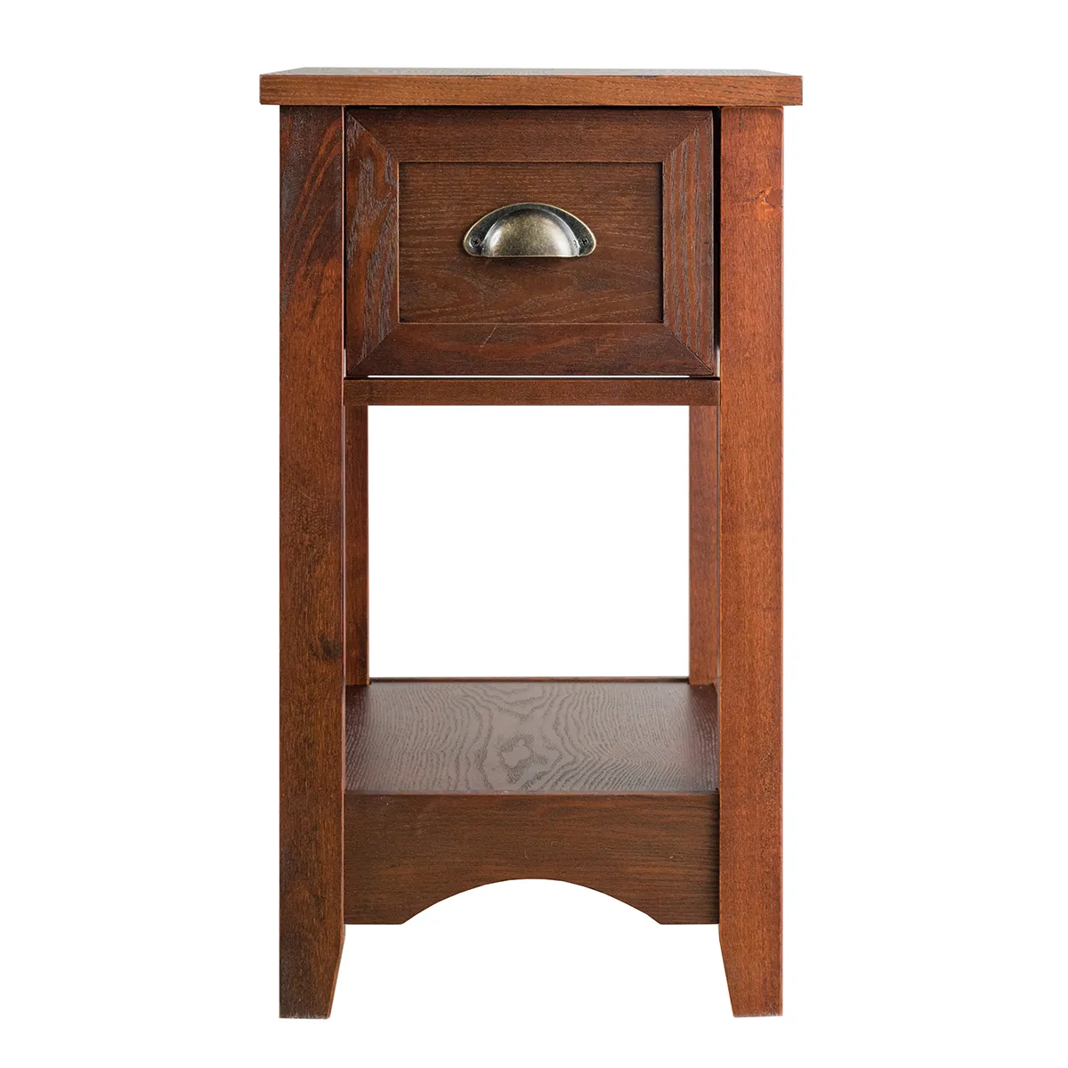 Dit is onze eenvoudige maar modieuze bijzettafel, die functionaliteit toevoegt aan elke ruimte in je huis. Met zijn retro-look en het filigraan handvat past de bijzettafel perfect bij de inrichting van je huis. De bijzettafel beschikt over een ruime lade en een plank aan de onderkant om veel opbergruimte te bieden en ervoor te zorgen dat je kamers netjes blijven. Bovendien is deze tafel duurzaam en stabiel en heeft hij een lange levensduur. Boven en onder kun je je decoraties en andere kleine inrichtingsvoorwerpen plaatsen. Binnenin kun je persoonlijke voorwerpen enz. opbergen. Deze multifunctionele tafel kan in de woonkamer, slaapkamer en werkkamer als nachtkastje of bijzettafel worden geplaatst. Hij zal je zeker een gezellig leven geven.