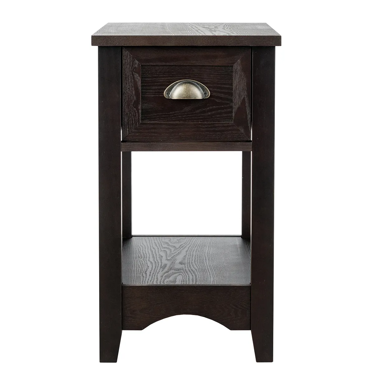Dit is onze eenvoudige maar modieuze bijzettafel, die functionaliteit toevoegt aan elke ruimte in je huis. Met zijn retro-look en het filigraan handvat past de bijzettafel perfect bij de inrichting van je huis. De bijzettafel beschikt over een ruime lade en een plank aan de onderkant om veel opbergruimte te bieden en ervoor te zorgen dat je kamers netjes blijven. Bovendien is deze tafel duurzaam en stabiel en heeft hij een lange levensduur. Boven en onder kun je je decoraties en andere kleine inrichtingsvoorwerpen plaatsen. Binnenin kun je persoonlijke voorwerpen enz. opbergen. Deze multifunctionele tafel kan in de woonkamer, slaapkamer en werkkamer als nachtkastje of bijzettafel worden geplaatst. Hij zal je zeker een gezellig leven geven.