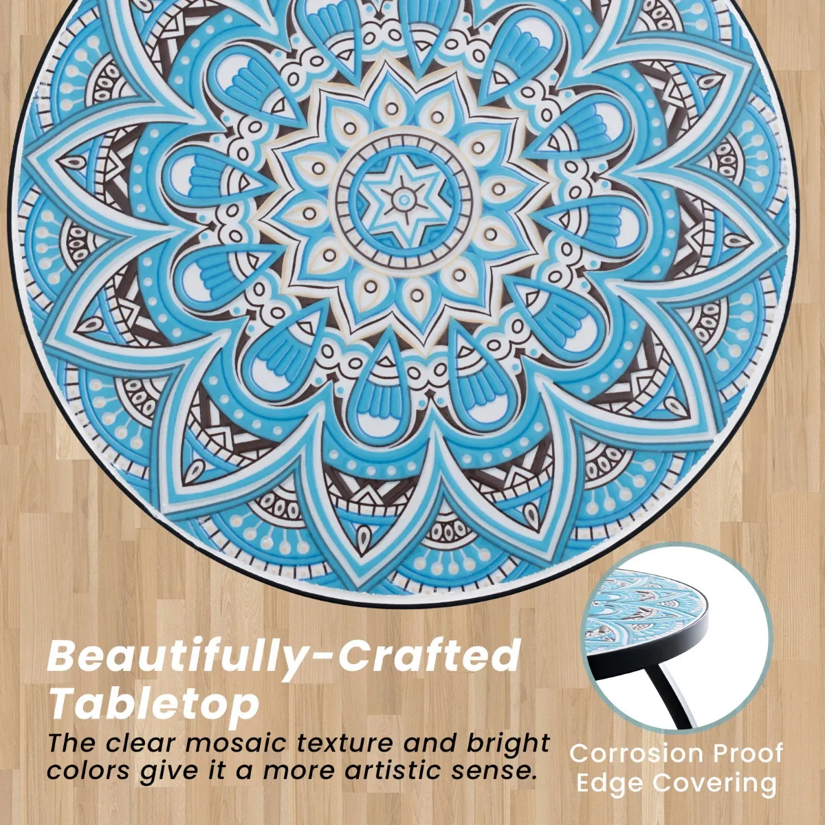 De 35 cm mozaïek bijzettafel, met aantrekkelijke motieven op het blad, ziet er geweldig uit en is kleurvast, waardoor hij lang gebruikt kan worden. Ondersteund door een stevig metalen frame en stevige schroefverbinding biedt het uitstekende stabiliteit en duurzaamheid. De passende hoogte van 55 cm en het aantrekkelijke uiterlijk maken hem perfect om naast een ontspanningsstoel te zetten of als stijlvolle plantenstandaard. Binnen of buiten, het voegt elegantie toe aan elke ruimte.