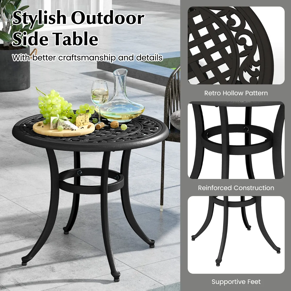 Deze bijzettafel van gegoten aluminium is een hoogwaardig outdoor meubelstuk dat duurzaamheid, stabiliteit en elegantie combineert.