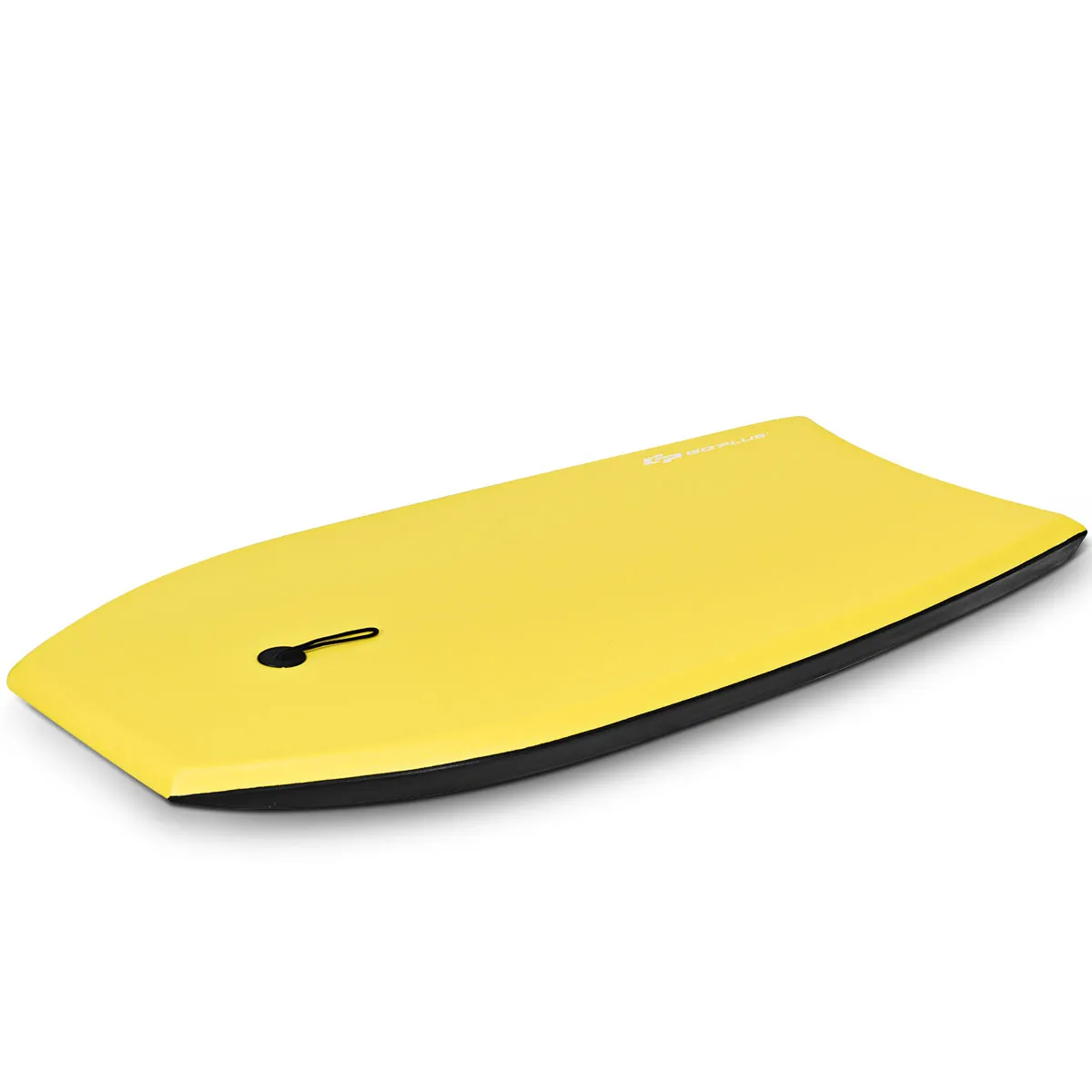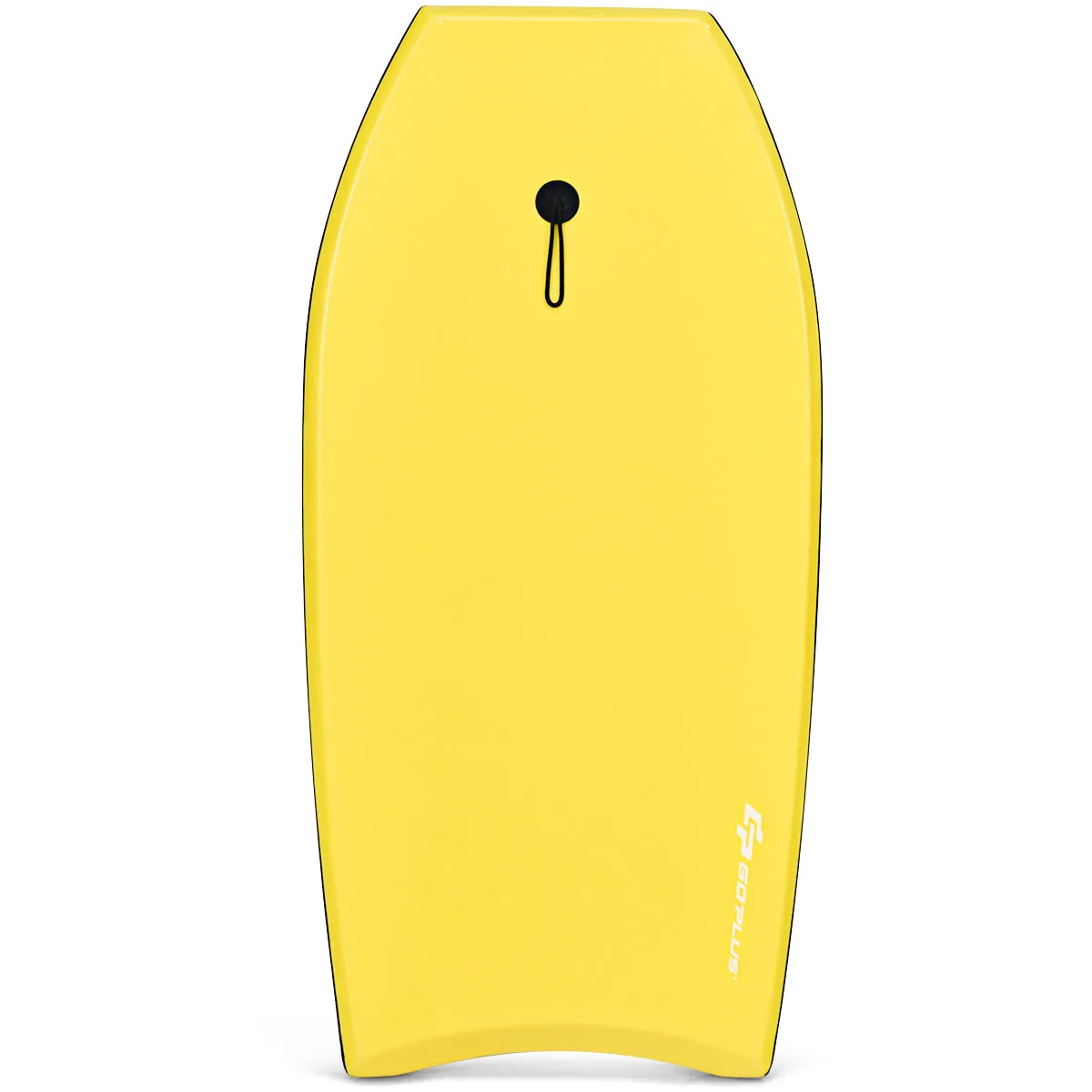 Wil je met je vrienden een andere sport proberen? Ons bodyboard geeft je een coole en geweldige ervaring van het rijden op een golf op een hete zomerdag. De halvemaanvormige staart heeft een grote flexibiliteit en comfort, passend bij uw verschillende rijstijlen. Gemaakt van hoogwaardige EPS-kern, XPE-dek en HDPE-gladde bodem, heeft het een sterk drijfvermogen en draagvermogen. Bovendien heeft het een goede slagvastheid en weersbestendigheid, waardoor het moeilijk te vervormen en vervagen is. Het belangrijkste is dat het een riem heeft en een polsbandje dat je beschermt tegen wegspoelen door de golven. De lichtgewicht is gemakkelijk mee te nemen en te vervoeren, dus u kunt hem meenemen naar het zwembad, het waterpark, de rivier en de zee. Waar wacht je op? Kom genieten van de watersport!