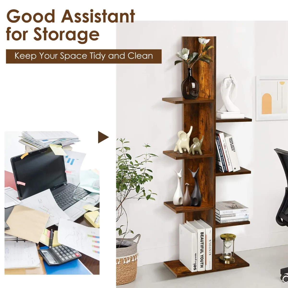 【Hoge capaciteit】: Dit hoge rek heeft een meerlaags design, elke laag is getrapt, in totaal zeven lagen, je kunt meer doen. Daardoor wordt ook je kamer opgeruimd.