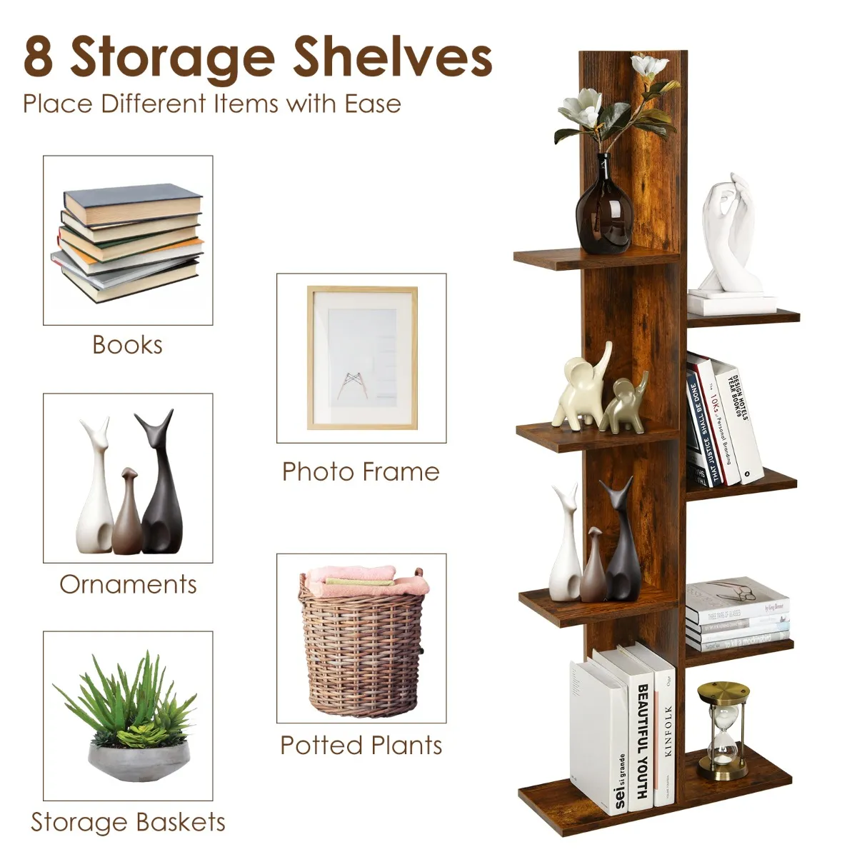 Het is een zeer mooie manier om je kleurrijke bloemen te presenteren – knoppen, groene planten, kruidenplanten, vazen enz. Op het hoge kantoorrek is alles spectaculair. De MDF-materialen zijn temperatuurbestendig, uv- en waterdicht. Je kunt de standaard in je mooie tuin of tuin plaatsen om je planten op te bergen. De grote constructie maakt het mogelijk om je planten zeer gemakkelijk aan te brengen en te verwijderen. Het rek is eenvoudig te installeren en bespaart ruimte.