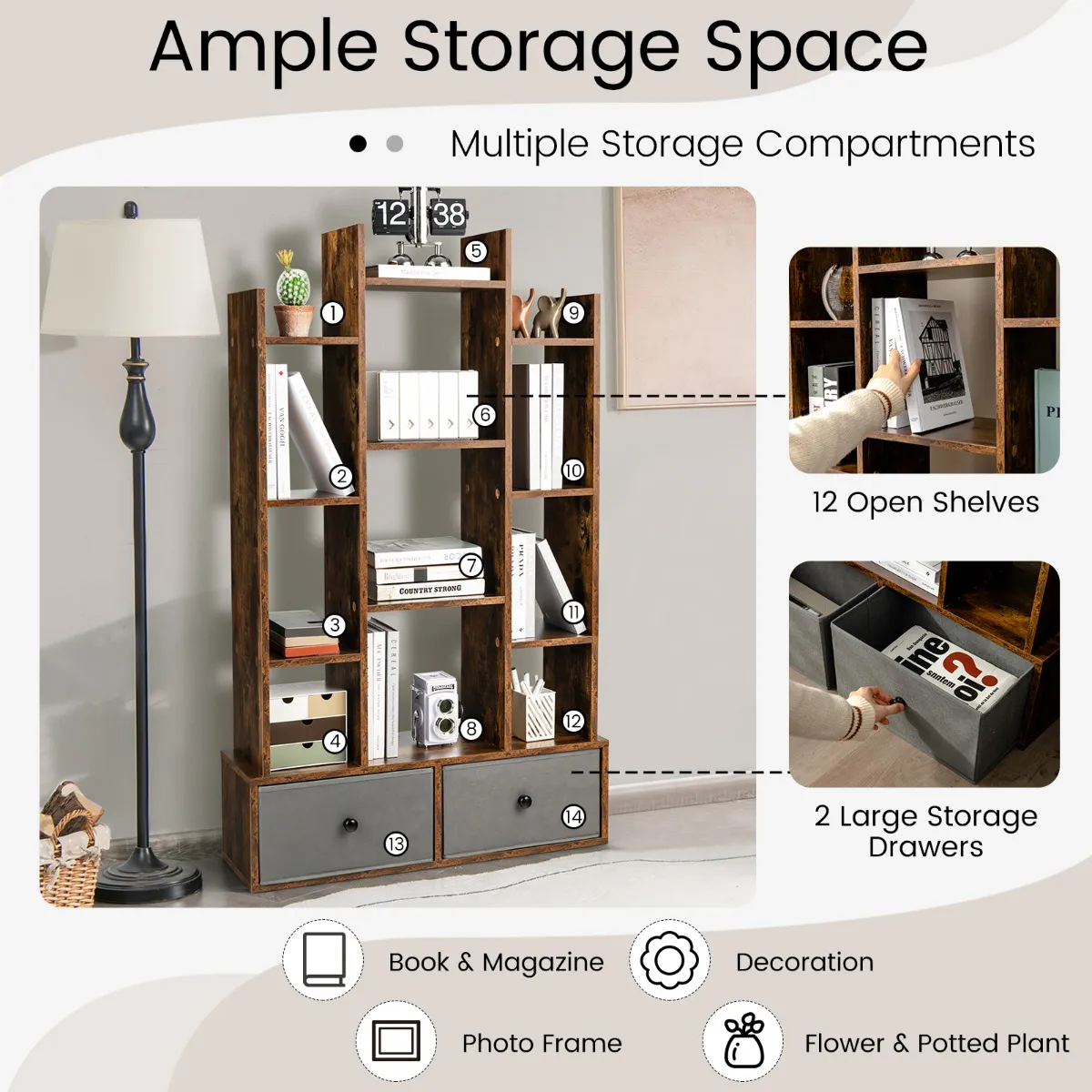 Het open rek met 12 niveaus en de grote laden bieden voldoende ruimte voor je boeken, cd’s en fotoalbums en maken het mogelijk om populaire verzamelstukken of decoratieve voorwerpen te presenteren. Het hoogwaardige houtmateriaal en de sterke verbindingen maken het boekenkast perfect voor langdurig gebruik. Je kunt dit rek op verschillende plaatsen gebruiken, bijvoorbeeld op kantoor, woonkamer of werkkamer.