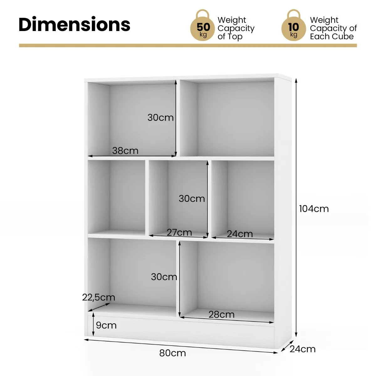 【7 open vakken】: Deze boekenkast met 3 verdiepingen heeft 7 open vakken (4 grote en 3 kleine kubussen), plus een ruime lade, voor praktische organisatie en gemakkelijke toegang. Bovendien kun je dankzij de verschillende afmetingen van de kubussen je boeken, speelgoed, decoraties en opbergmanden efficiënt uitstallen.