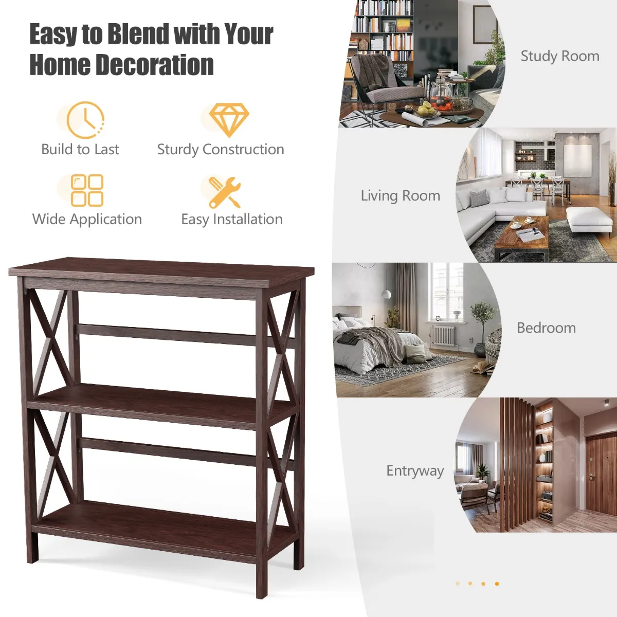 【Anti-kantelinrichting】Uitgerust met de anti-kantelinrichting achter, kan deze plank met 3 niveaus steviger aan de muur worden bevestigd, waardoor letsel door kantelen wordt voorkomen en uw gezin veilig is.