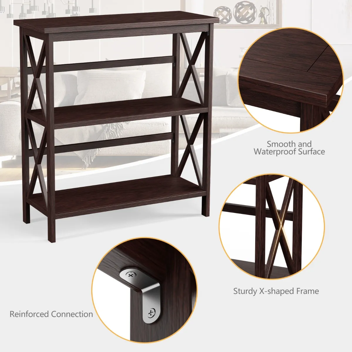 【Grote opslagruimte】Deze consoletafel is voorzien van grote open 3-etage planken, die gemakkelijk plaats bieden aan verschillende items, zoals boeken, foto’s, cd’s, prullaria en kantoorbenodigdheden.
