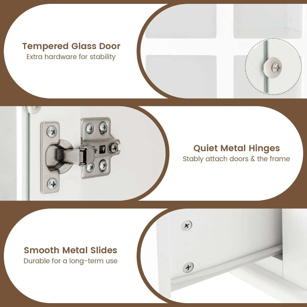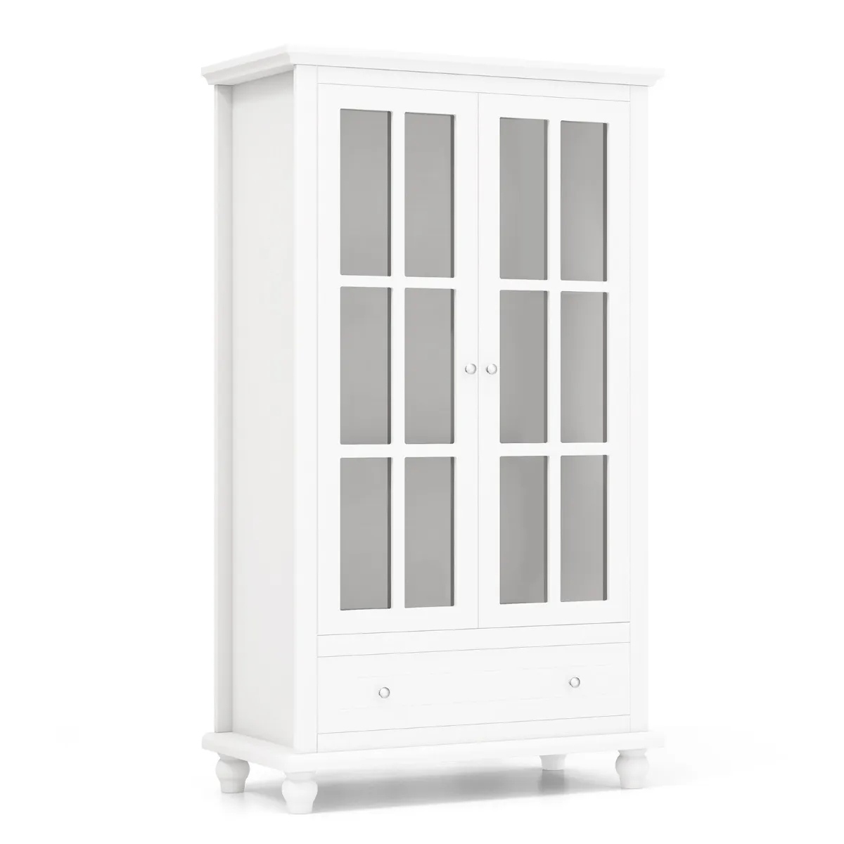 Glazen deuren en verstelbare plank: De vitrinekast is perfect geschikt om te presenteren en beschikt over twee heldere deuren van gehard glas, die bovendien een hoge duurzaamheid bieden. Bovendien is aan de binnenkant een 3-traps verstelbaar rek inbegrepen, waarmee de hoogte (3,5 cm/positie) vrij kan worden ingesteld, zodat gasten de decoraties in de kast beter kunnen bewonderen.