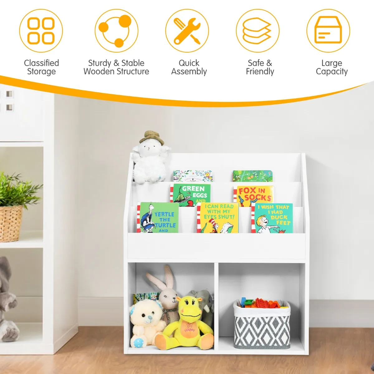 Het bovenste compartiment met drie niveaus en de twee open planken aan de onderkant bieden plaats aan boeken van verschillende formaten voor gemakkelijke opslag. De boekenkast is gemaakt van een hoogwaardige houten constructie, beschermt de gezondheid van kinderen en garandeert een lange levensduur. Dankzij de stevige constructie met de perfecte hoogte voor kinderen kunnen uw kinderen hun favoriete boeken kiezen en er gemakkelijk toegang toe krijgen, waardoor de organisatorische vaardigheden van uw kind worden bevorderd. Deze elegante en compacte kinderplank is een perfecte aanvulling op de kinderkamer, slaapkamer, woonkamer en andere kamers. Koop deze prachtige boekenplank voor uw kinderen als educatief cadeau!