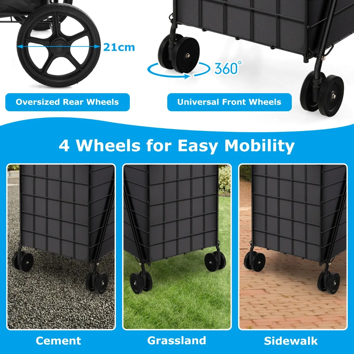 【Moeiteloos verplaatsen】 De antislip, schokabsorberende en slijtvaste premium rubberen wielen zijn ontworpen voor moeiteloze verplaatsing. En ze zijn geschikt voor verschillende ondergronden zoals cement, baksteen, asfalt, gras, enz.