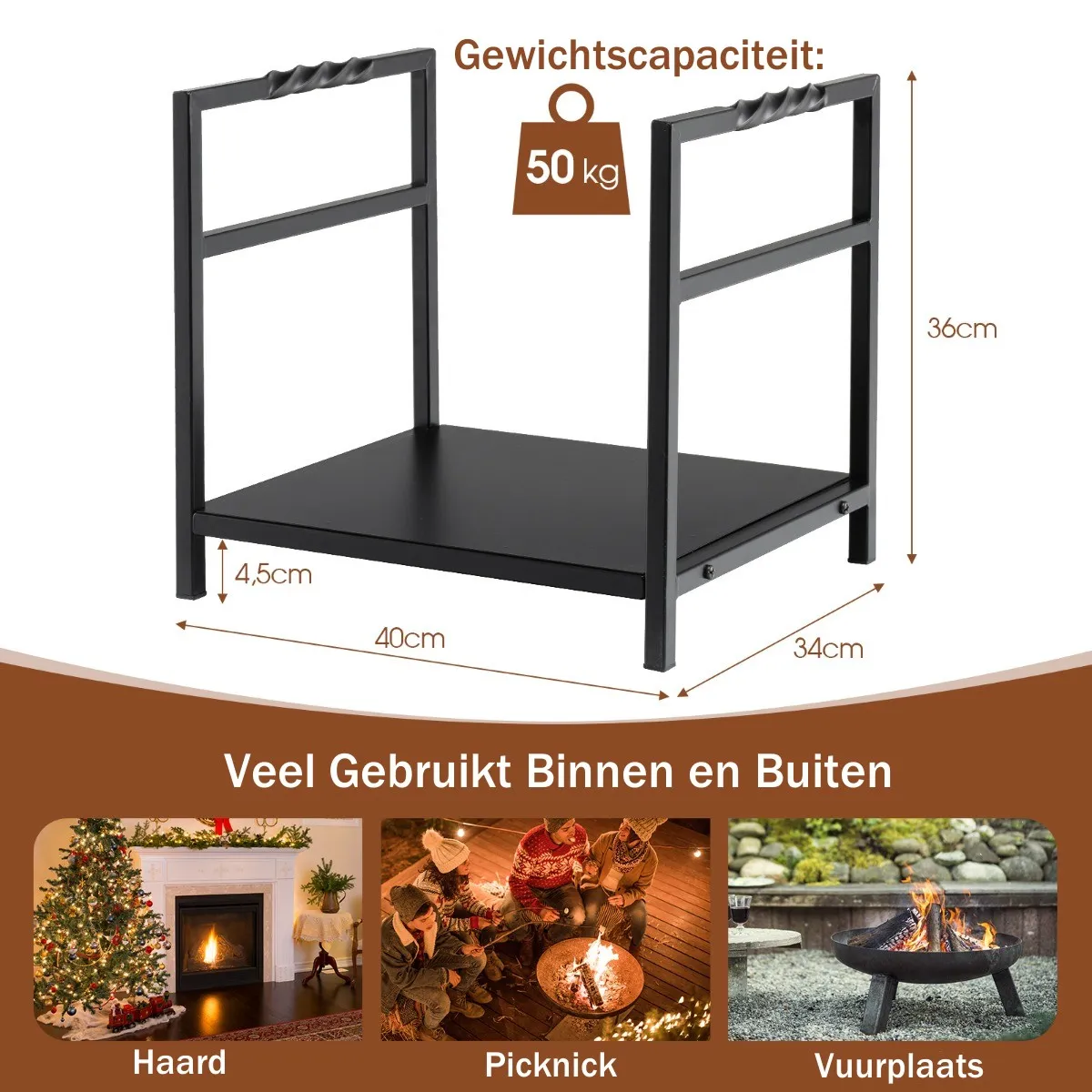 Bent u op zoek naar een brandhoutrek voor uw open haard, schoorsteen of houtkachel? Dit praktische brandhoutrek met handige handgrepen zal een goede keuze voor u zijn. Het brandhoutrek is gemaakt van een stevig stalen frame met een roestvrije afwerking en is duurzaam en weerbestendig voor een langere levensduur. En het kan tot 50 kg houden zonder vervorming. Bovendien biedt dit opbergrek voldoende ruimte om brandhout netjes op te bergen. Dankzij het compacte formaat kunt u het gemakkelijk in elke hoek van uw huis plaatsen wanneer u het niet gebruikt. Bovendien is het brandhoutrek met verhoogde poten perfect voor het opslaan en stapelen van houtblokken of palen om brandhout geventileerd en droog te houden. Bovendien is de montage eenvoudig dankzij de gedetailleerde instructies.