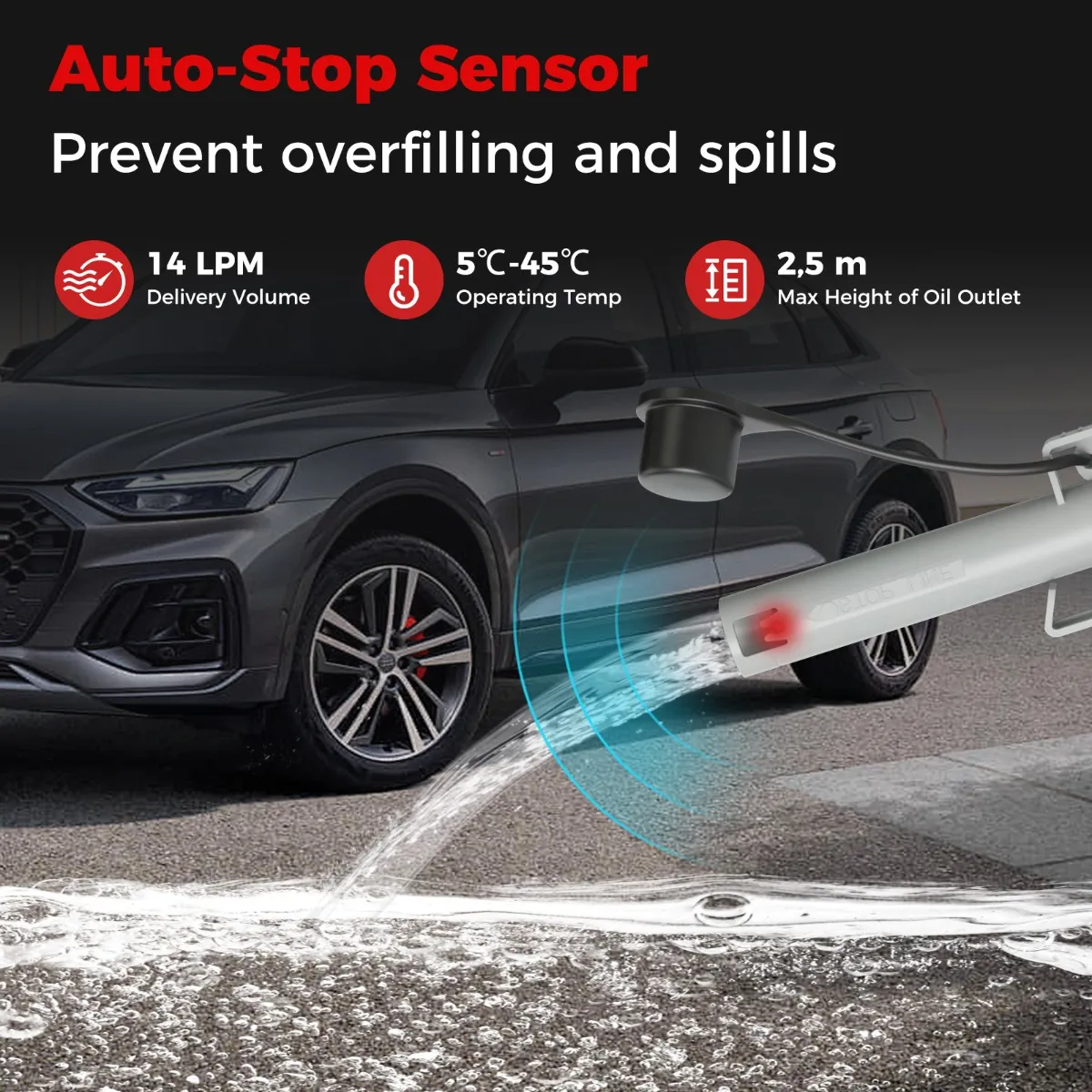 【Nooit meer morsen】: Deze brandstofpomp heeft een geavanceerde auto-stopsensor die de brandstofstroom onmiddellijk stopt om overlopen en morsen te voorkomen. Bovendien houdt de geïntegreerde klem het mondstuk op zijn plaats voor handsfree bediening.