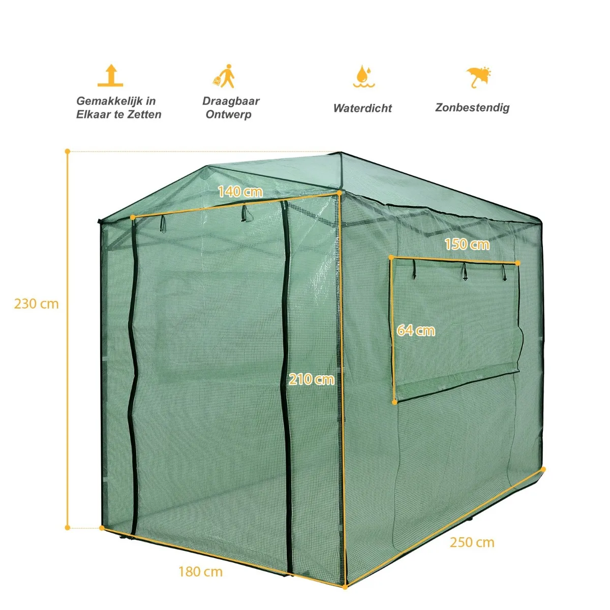 Groot bodemoppervlak van 180 cm x 250 cm voor het eenvoudig opbergen van verschillende planten