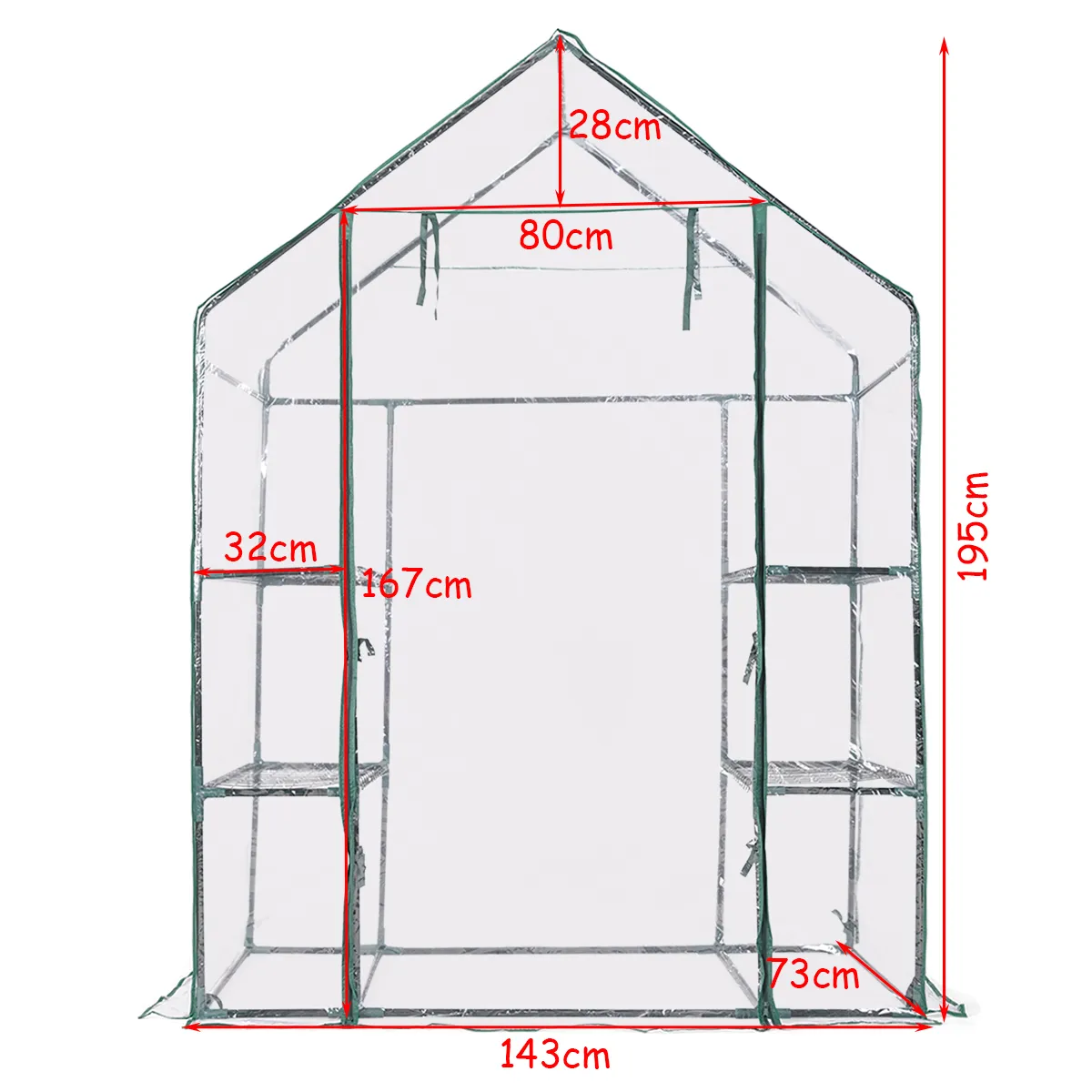 Deze kas is ideaal voor het kweken van planten en beschermt planten tegen zon, kou, wind en regen. De kas heeft veel planken die veel ruimte bieden.