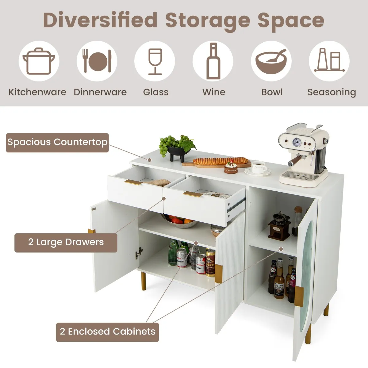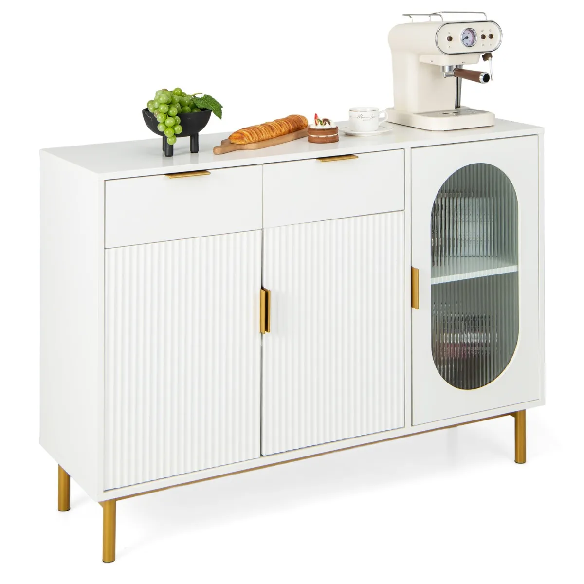Breed toepassingsgebied: Met zijn moderne en elegante uitstraling past deze buffetkast naadloos in elke ruimte. Of het nu gaat om keuken, slaapkamer of woonkamer – deze veelzijdige kast houdt je spullen georganiseerd en binnen handbereik.