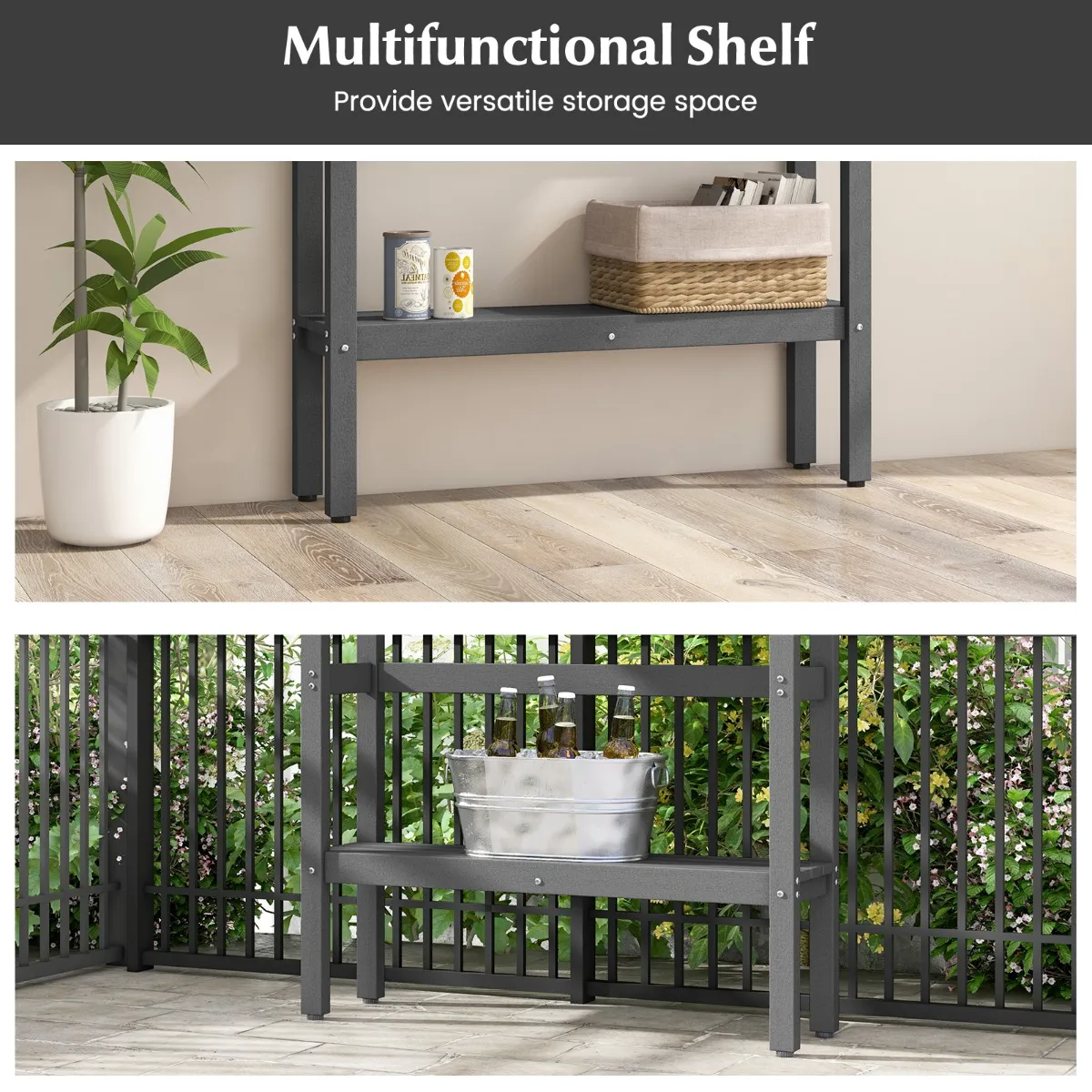 Open schap voor voldoende opbergruimte: De bartafel heeft een open schap van 109 cm lang x 26 cm breed om flexibiliteit te bieden voor verschillende behoeften. Afhankelijk van je behoeften kan het een opbergplank zijn voor je gereedschapskisten, tuingereedschap of ijsemmers.