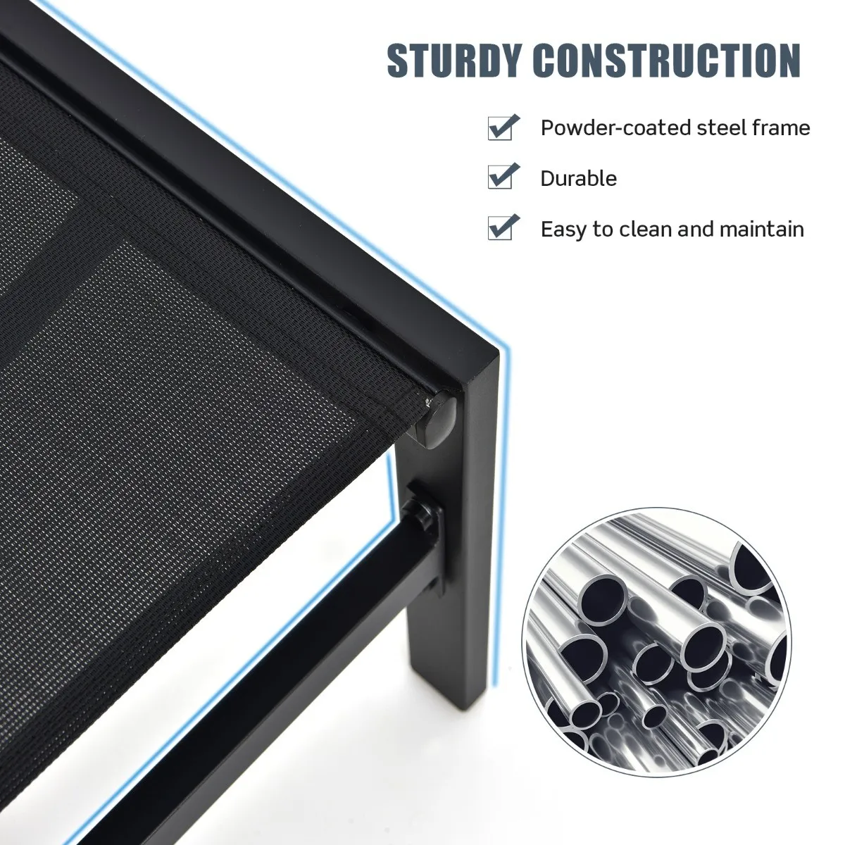 【Zwaar stalen frame】: Gemaakt van gepoedercoat stalen frame, deze patio ligbed zorgt voor een langdurige duurzaamheid en zal niet gemakkelijk vervormen. En het biedt een sterke ondersteuning met een maximale gewichtscapaciteit van 150kg. U zult zich vrij voelen om in de ligstoel te gaan liggen.