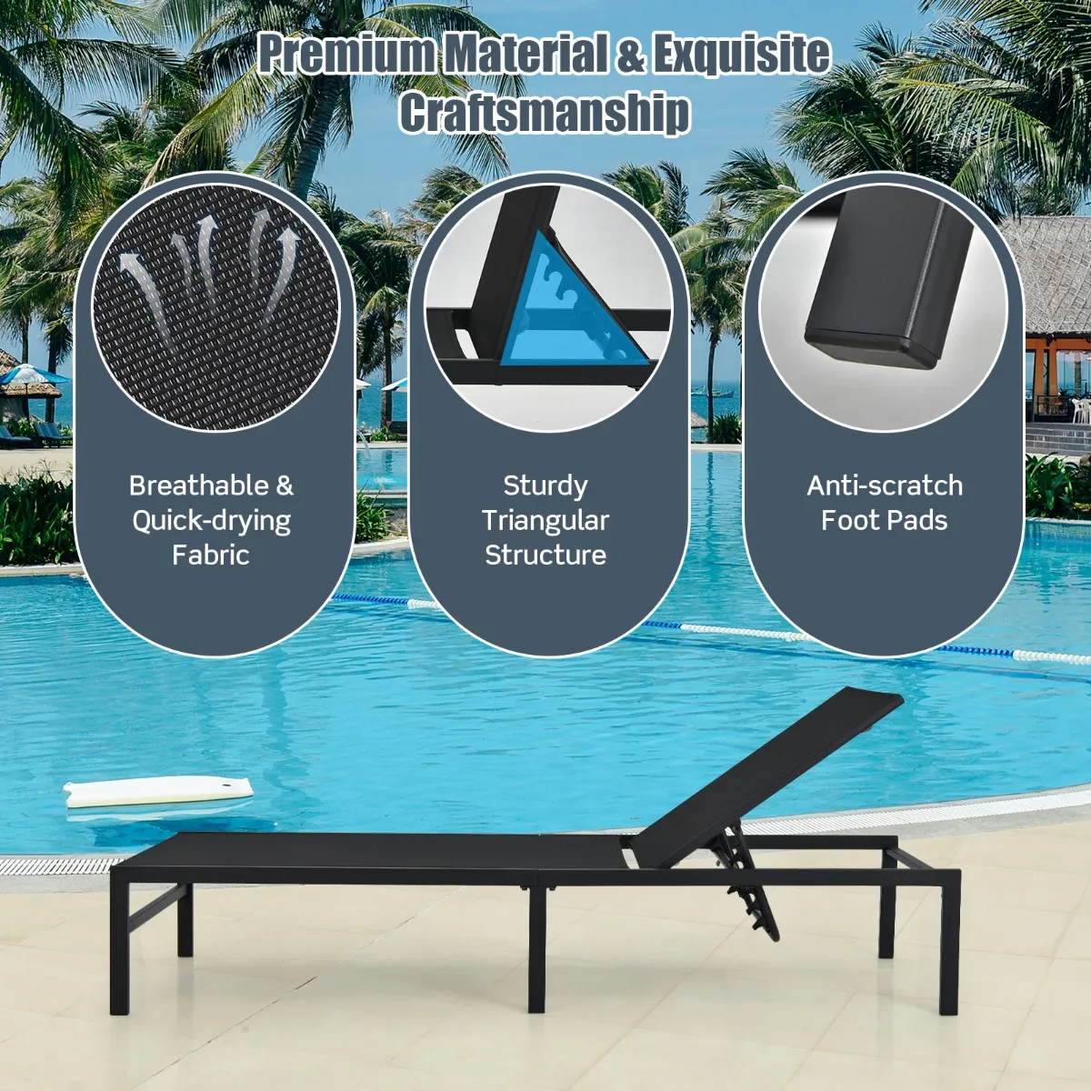 【Goed geselecteerde stof】: De rugleuning en zitting van de ligstoel zijn bekleed met ademende en zeer elastische stof, die ook sneldrogend is en perfect voor gebruik buitenshuis. Hoogwaardige stoffen zorgen voor een comfortabele ervaring.