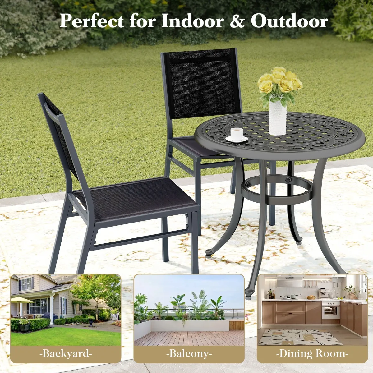Stevig aluminium:Â Uitgerust met een hoogwaardig aluminium frame dat stevig is, biedt de terrasstoel uitzonderlijke ondersteuning en stabiliteit. De roestbestendige prestaties zijn ook perfect voor dagelijks buitenplezier.