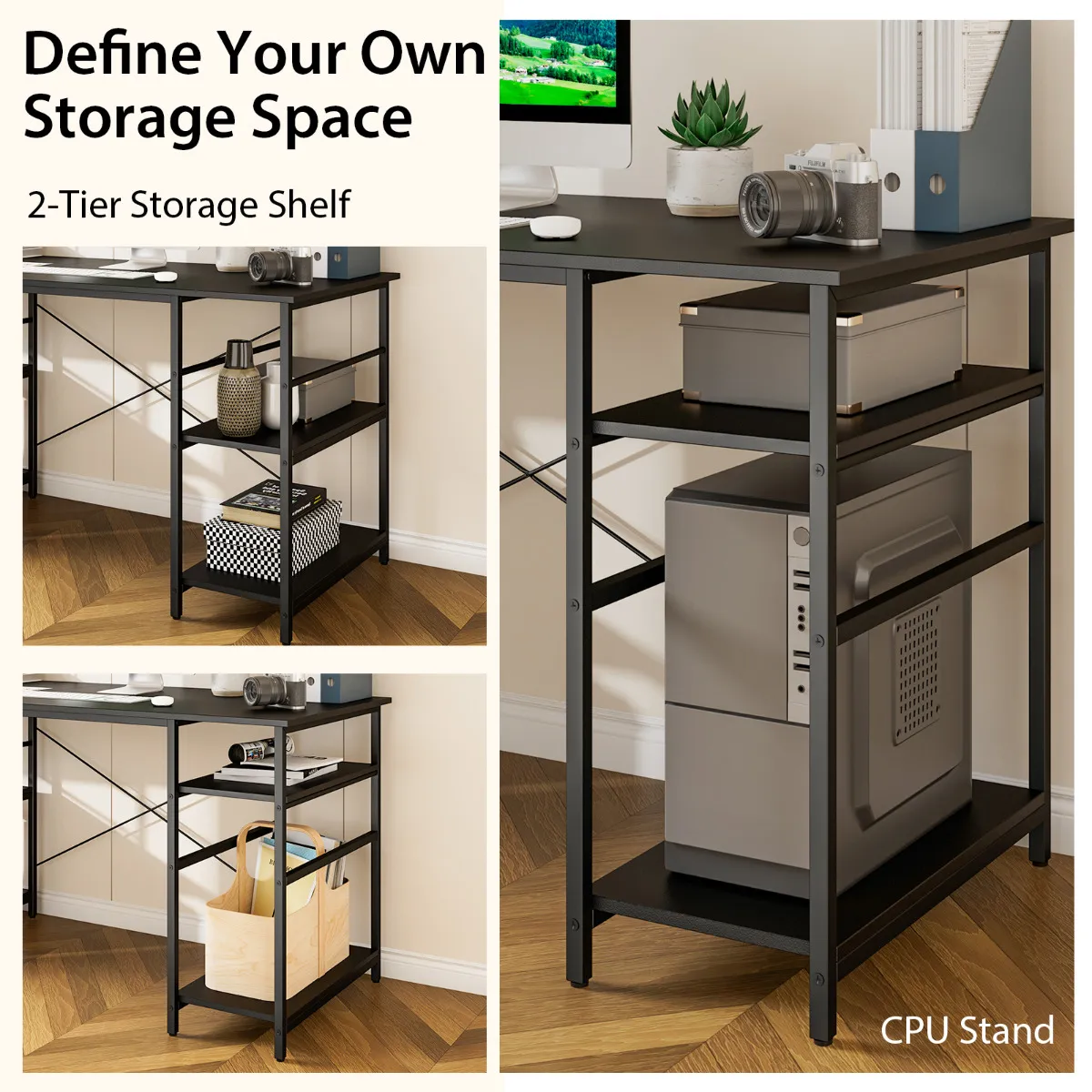 Schik de planken naar wens op: Onder het grote tafelblad bevinden zich 4 extra opbergvakken, waarmee je het werkgerei kunt organiseren om ruimte op het tafelblad vrij te maken. Bovendien kun je de 2 verdiepingen opbergrekken ook in een CPU-standaard veranderen door gewoon de middelste planken tijdens de montage weg te laten.